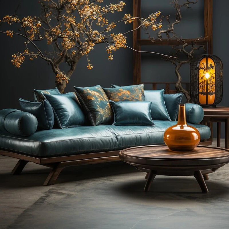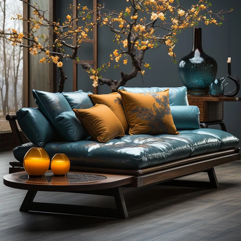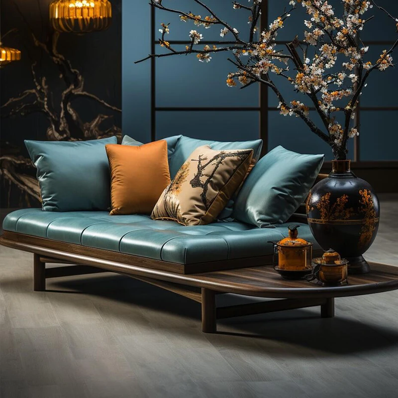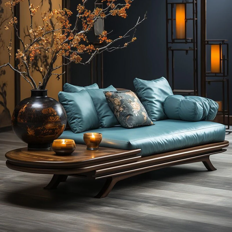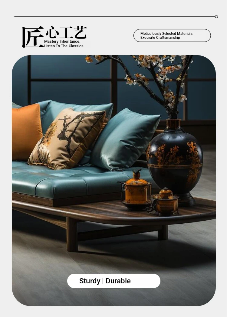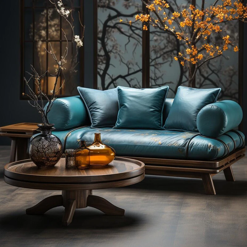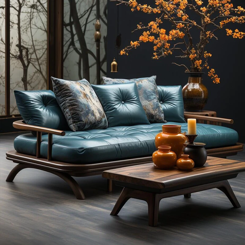 2025 New Chinese Style Solid Wood Sofa - Minimalist Chic Mid-Century Design for Home Use, 3-Seater Luxury Comfort