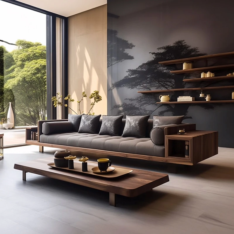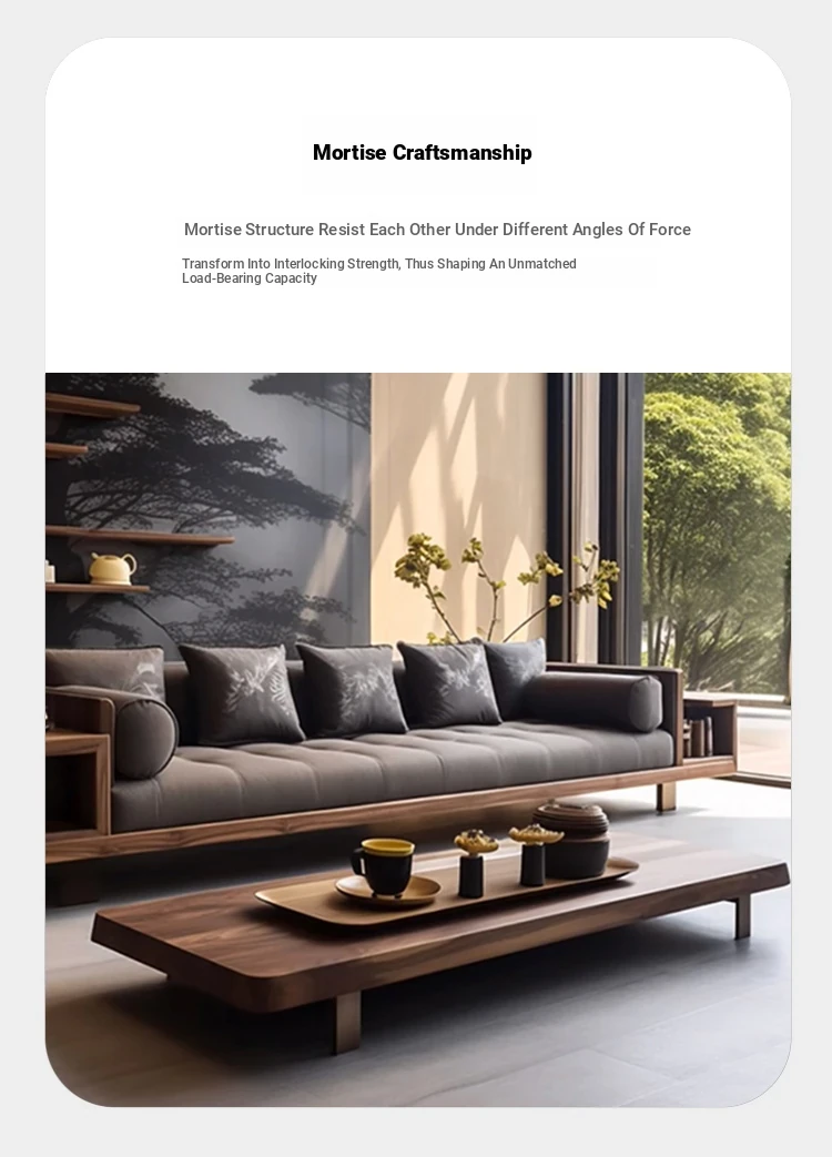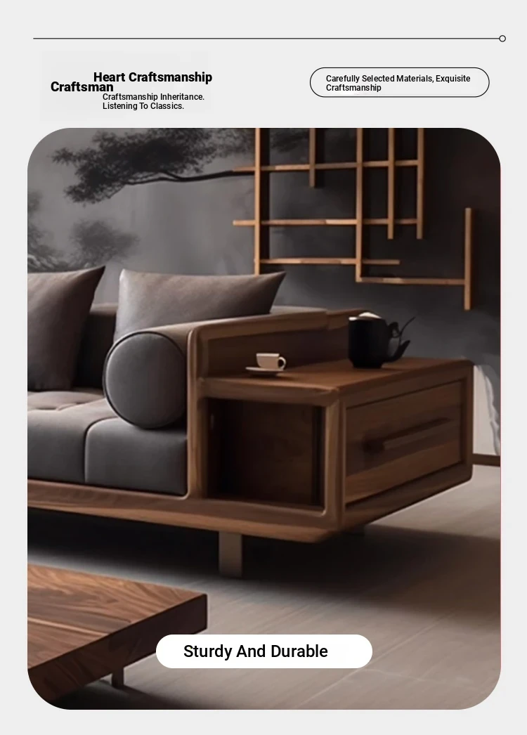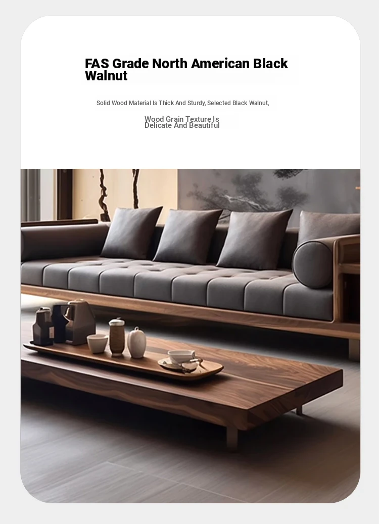 2025 New Chinese Style Solid Wood Sofa - Modern Light Luxury Walnut Straight Sofa for Elegant Living Rooms, Perfect for Home Use