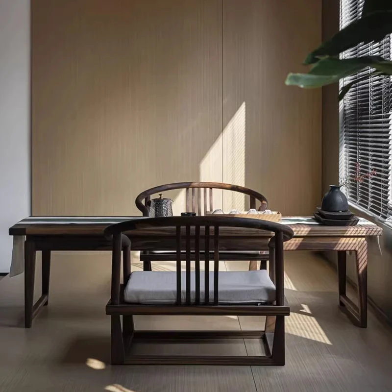2025 New Compact Balcony Tea Table - Japanese Tatami Style Walnut Wood Tea Set for Bay Windows - Simple and Elegant Design for Enjoying Tea Time
