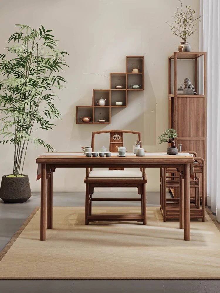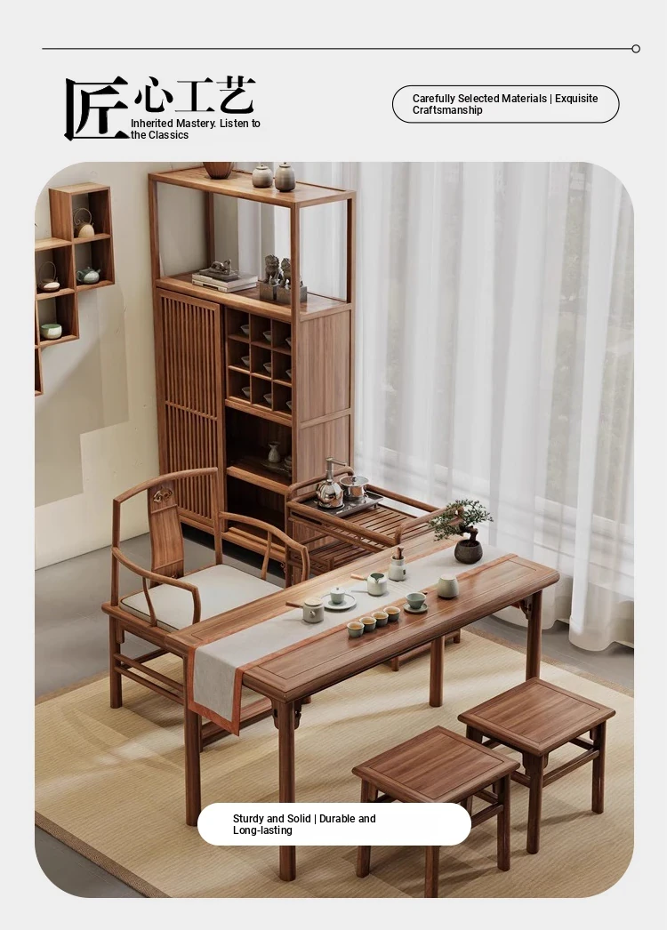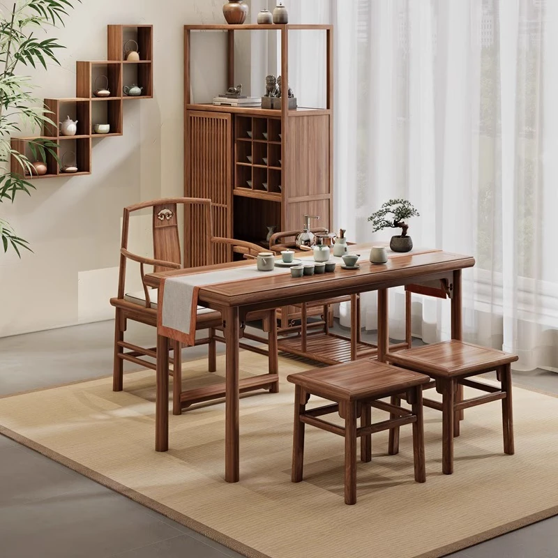 2025 New Compact Chinese-Style Balcony Tea Table - Walnut Wood Easy-to-Use Tea Brewing Table for Home, Perfect for Bay Windows
