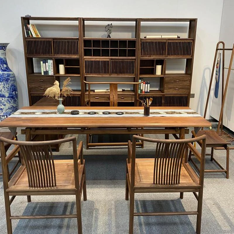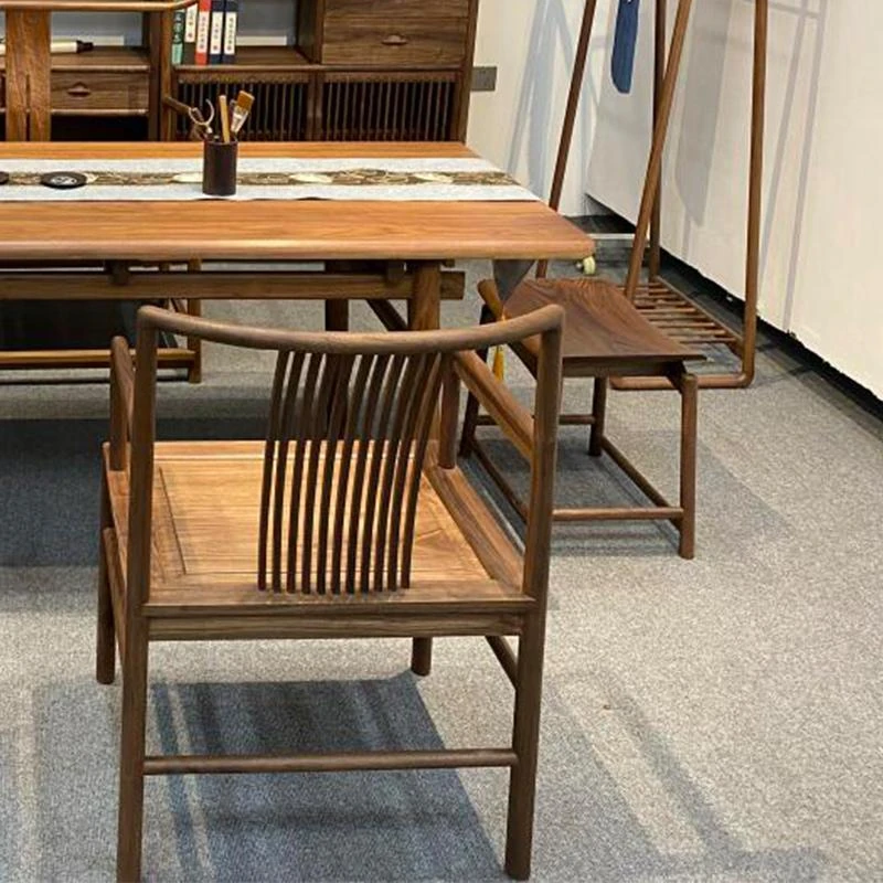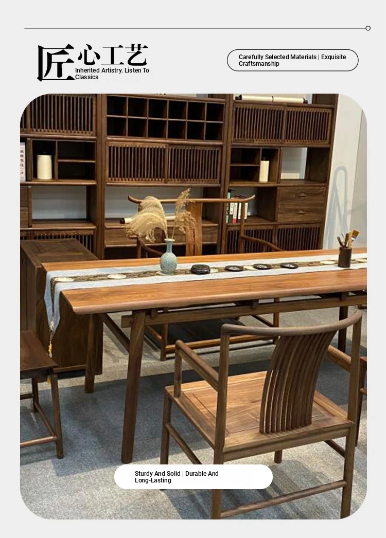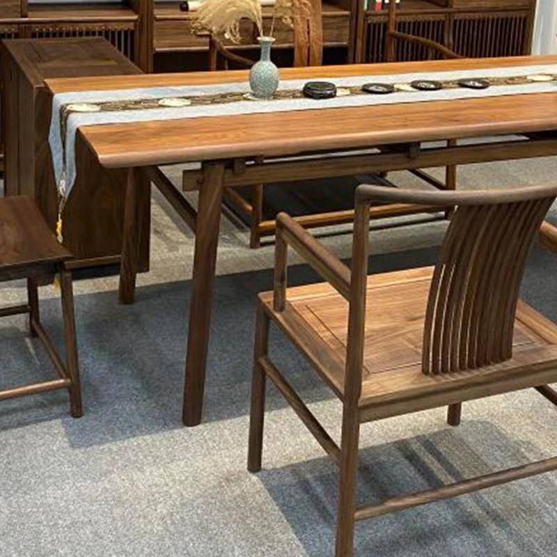2025 New Elegant Minimalist Solid Wood Walnut Dining Table & Tea Table Combo - Modern Chinese Style Luxury Home Dining Experience