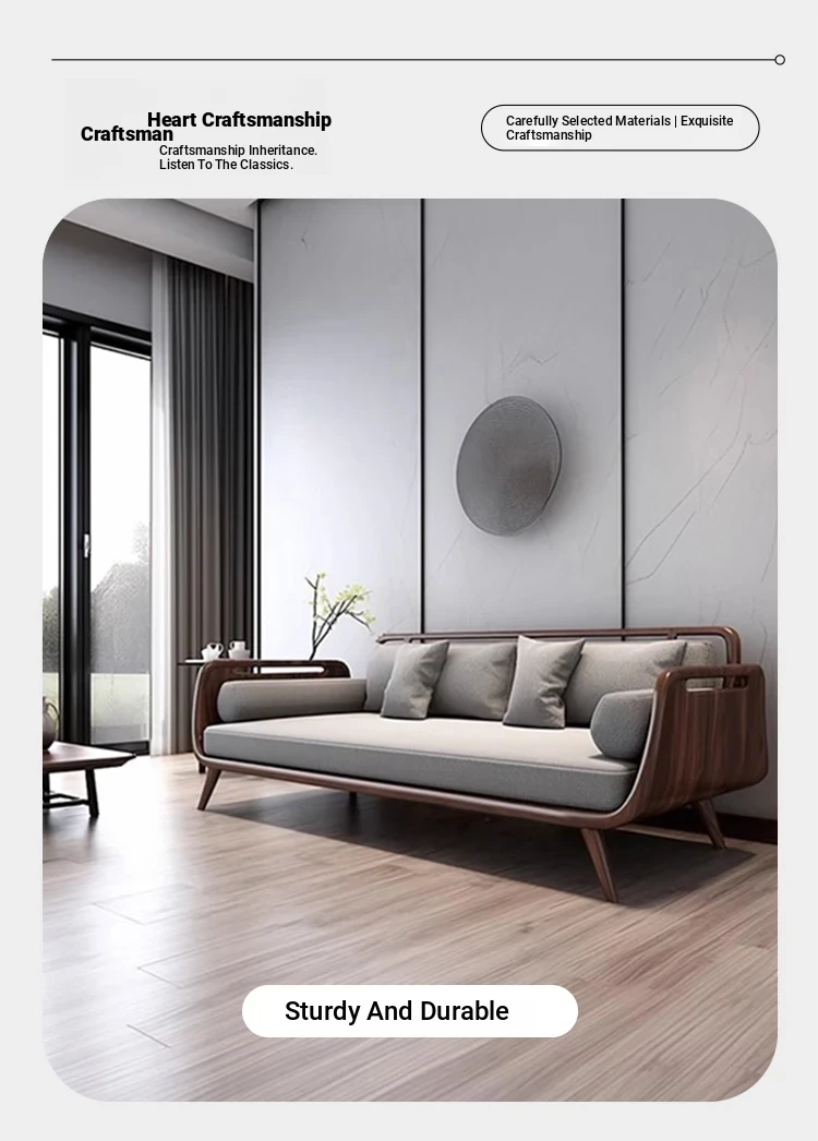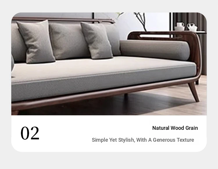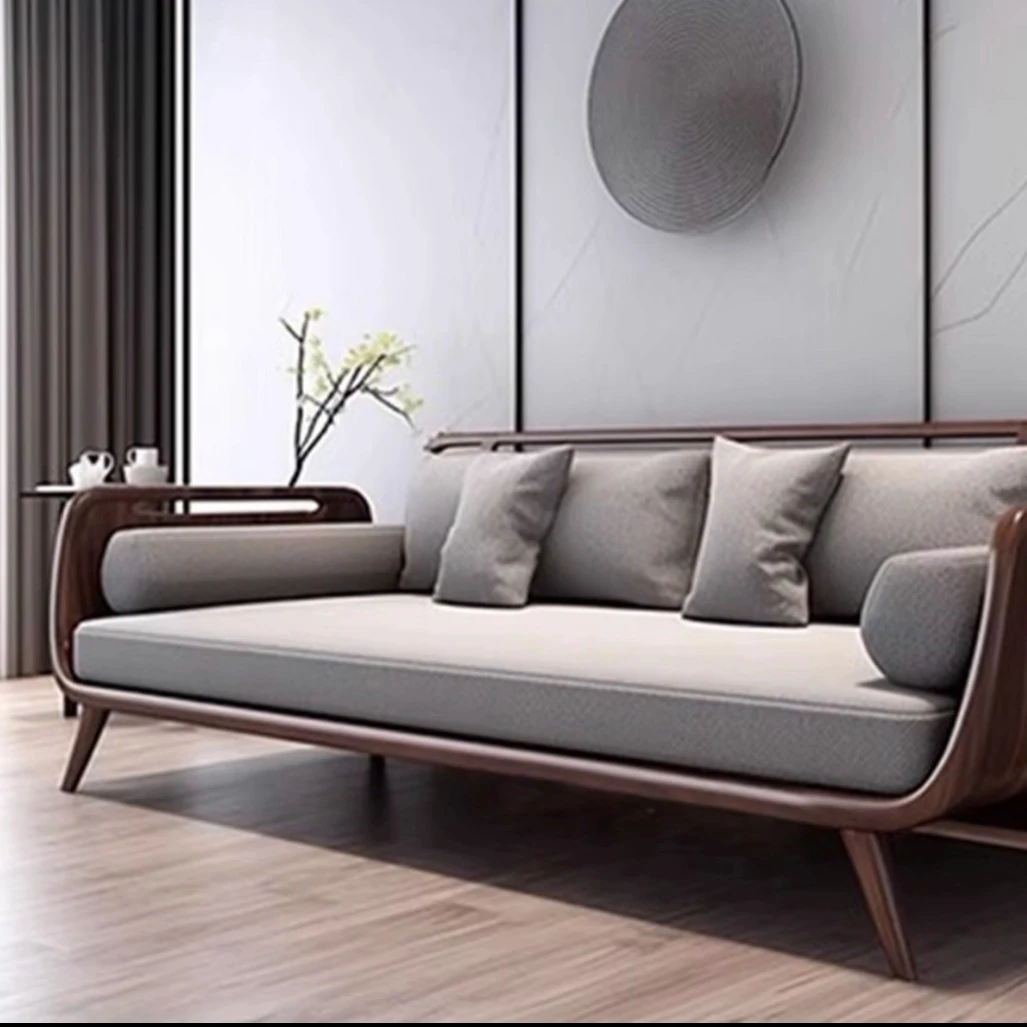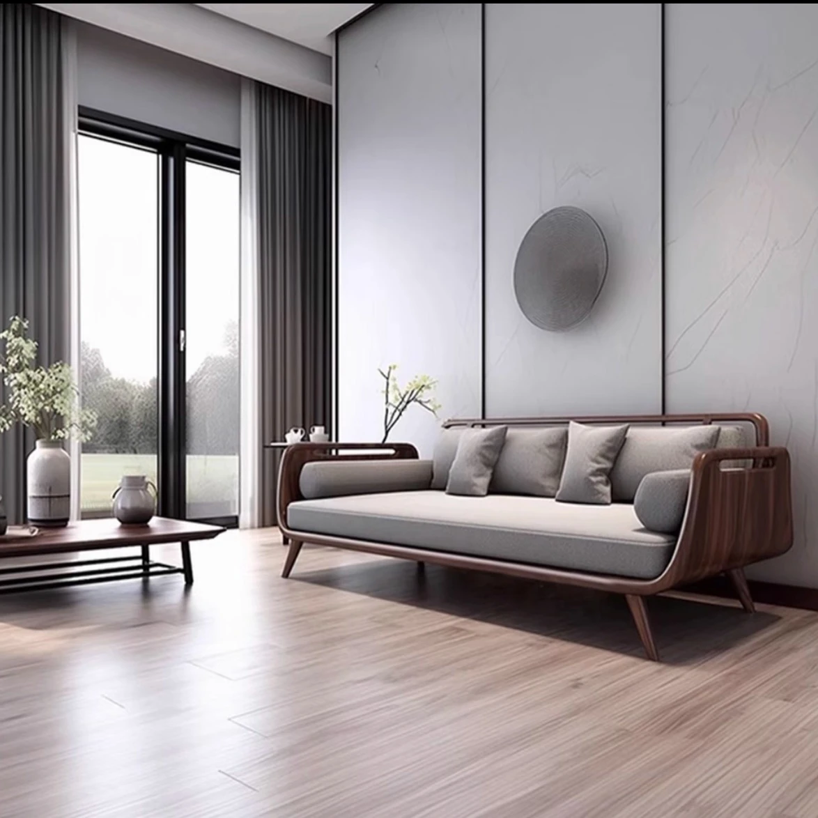 2025 New Elegant Modern Chinese Walnut Sofa - High-End Minimalist Fabric Daybed with Solid Wood Design
