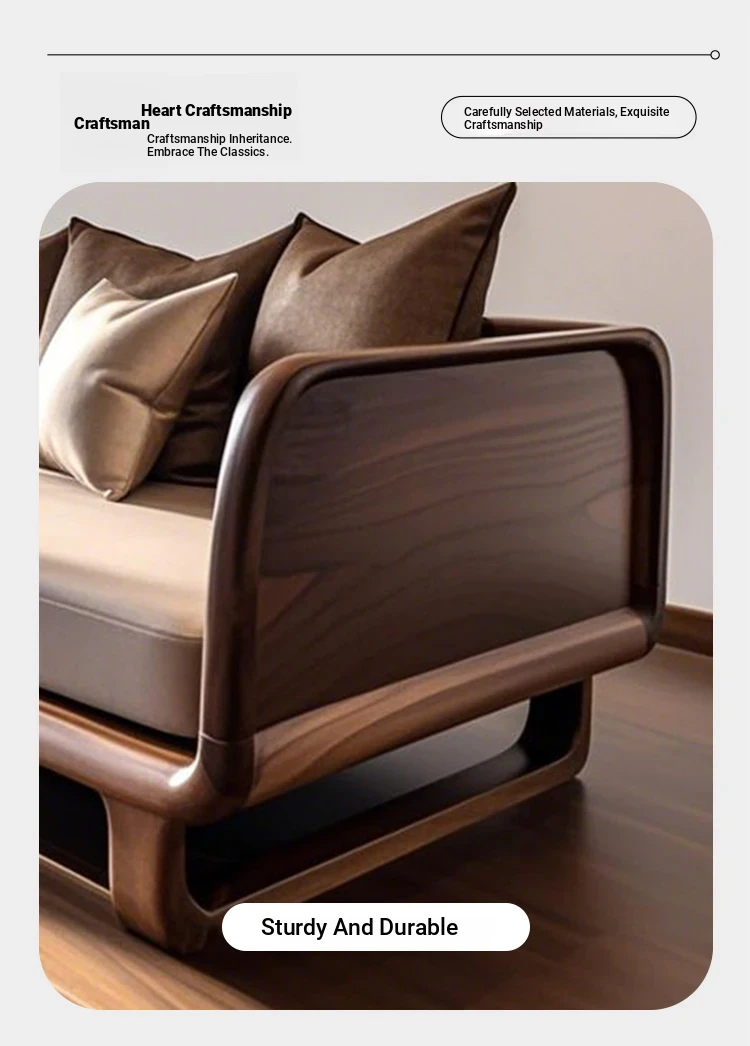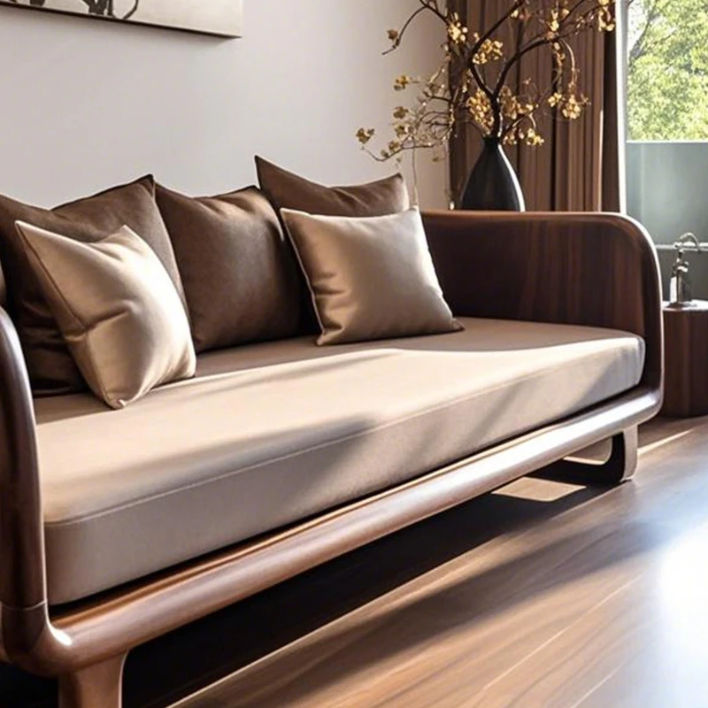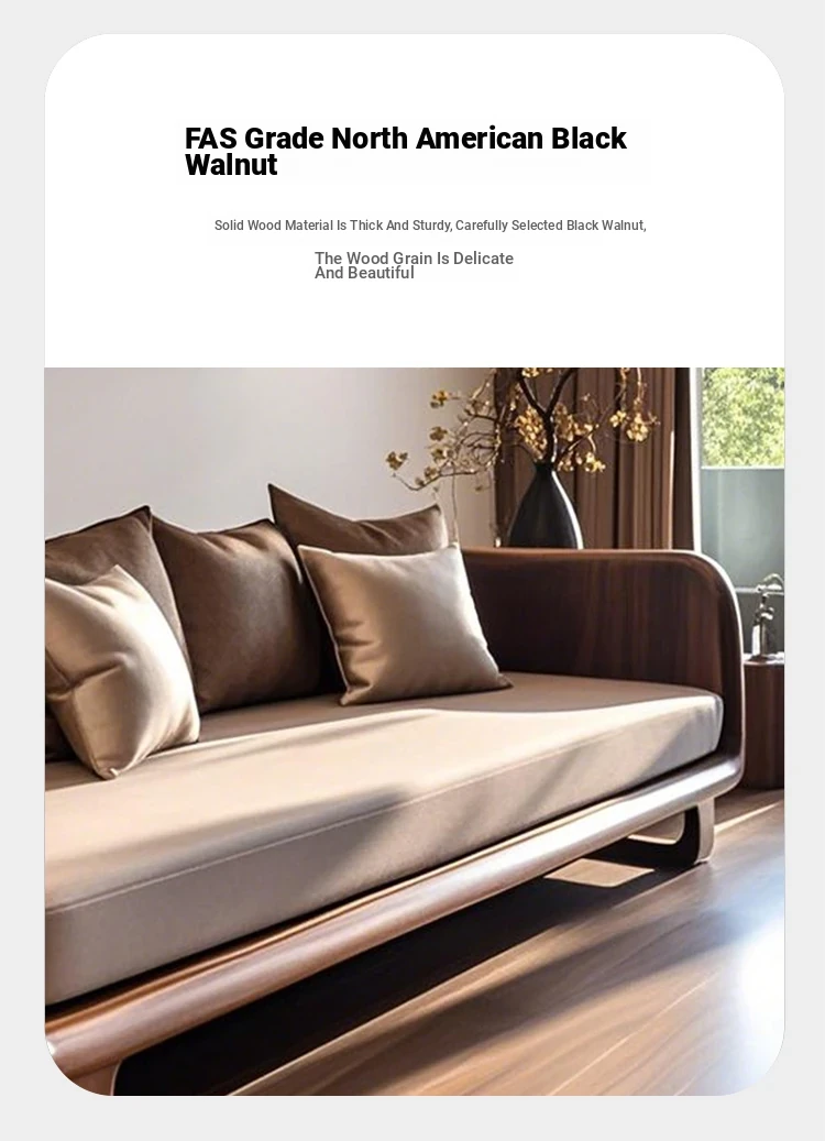 2025 New High-End Solid Wood Sofa in Modern Chinese Style - Minimalist Black Walnut Zafu Bed Sofa for Tea Room and Living Room Use
