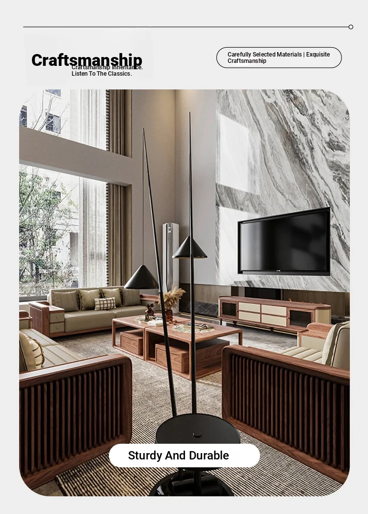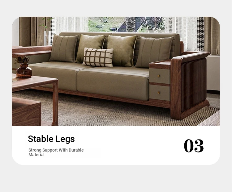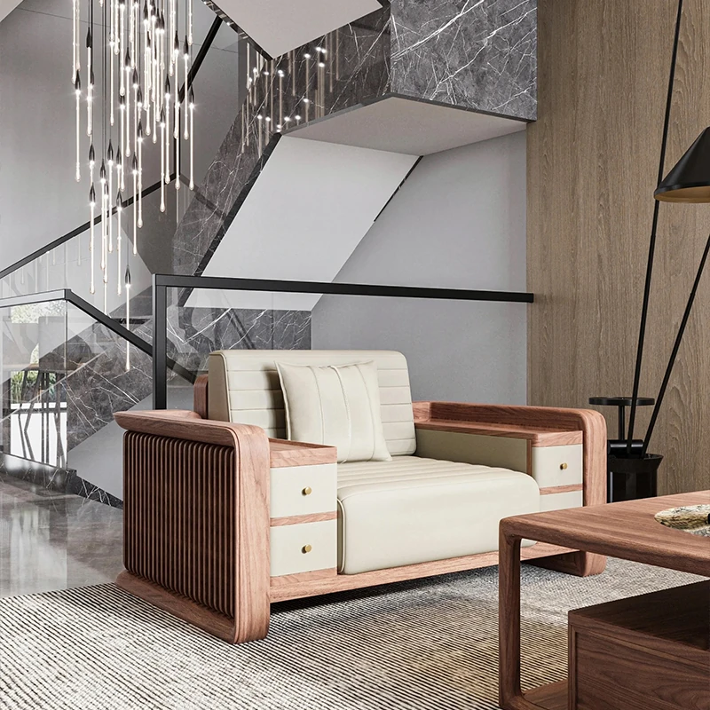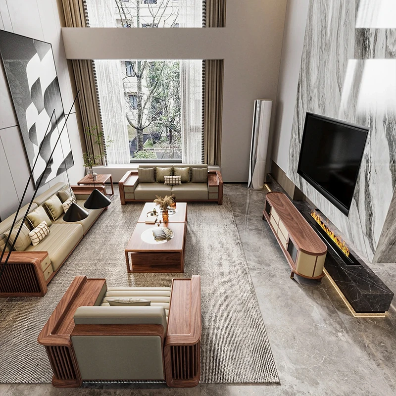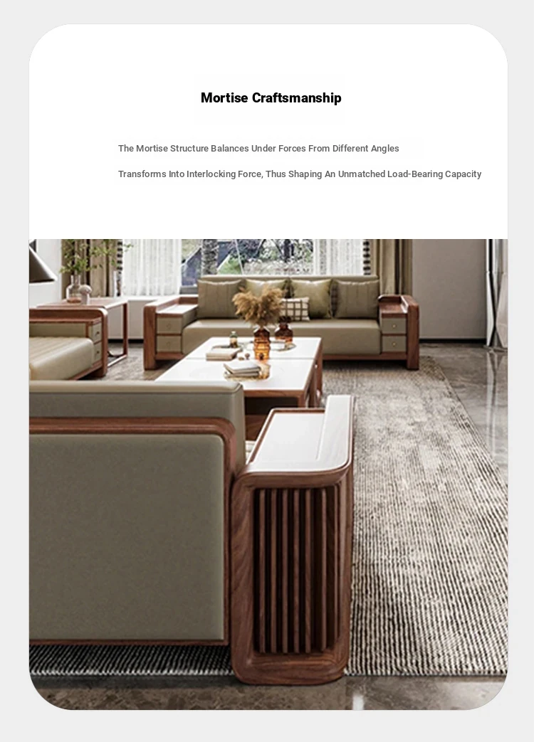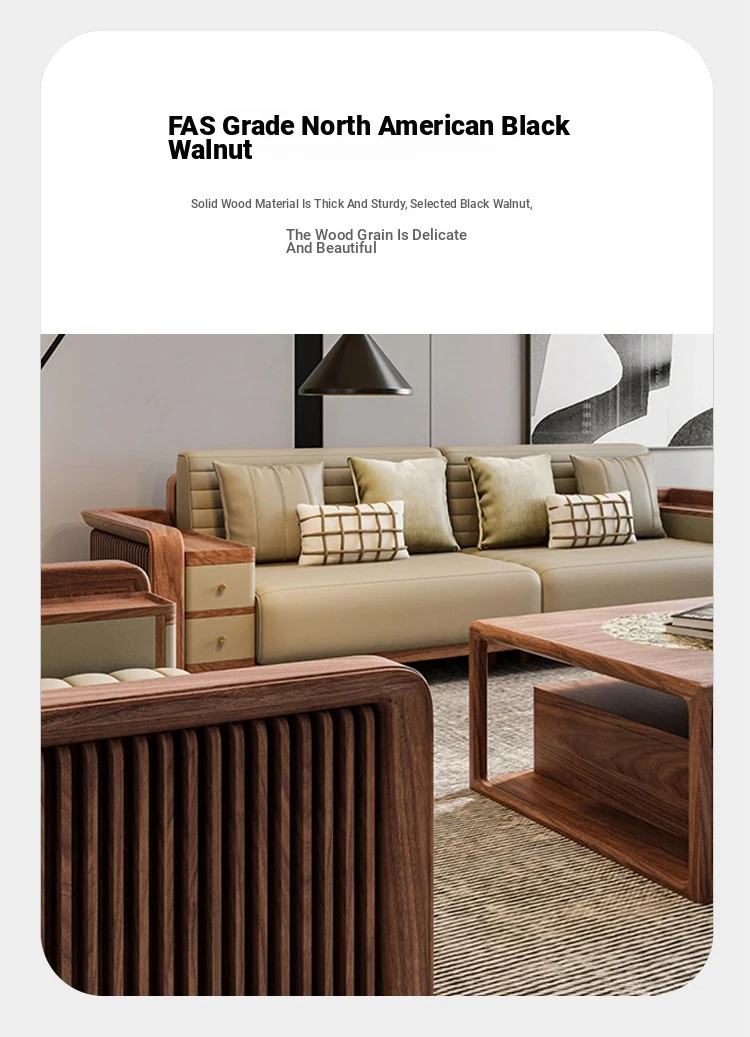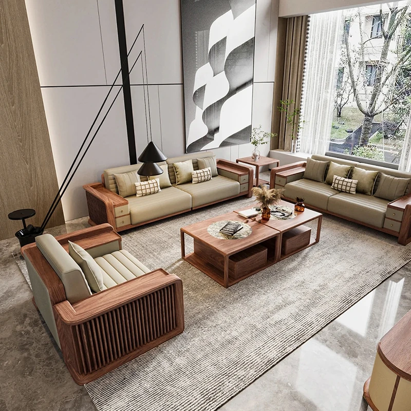 2025 New Large Living Room Sofa - Elegant New Chinese Style Solid Wood and Fabric Sofa for Home Reception - Premium Walnut Finish for Villas