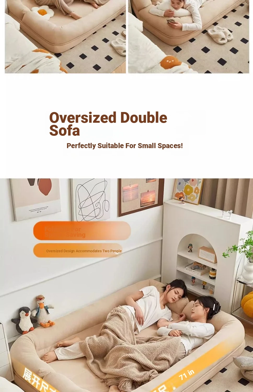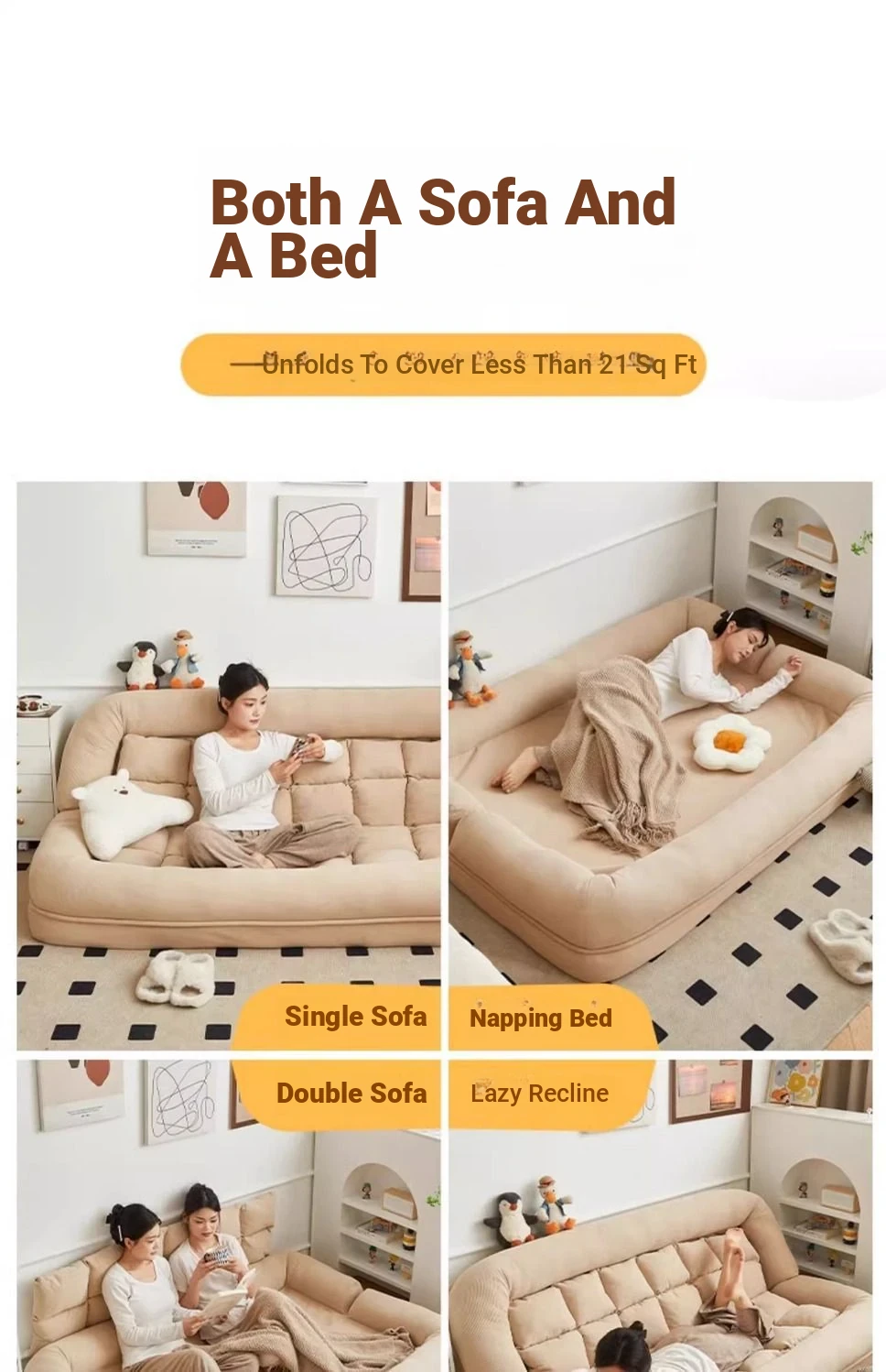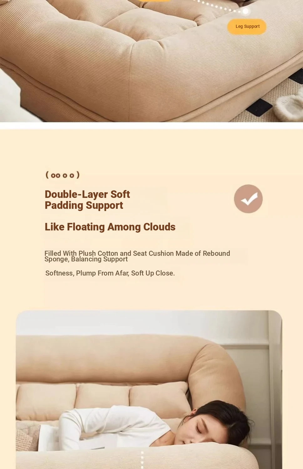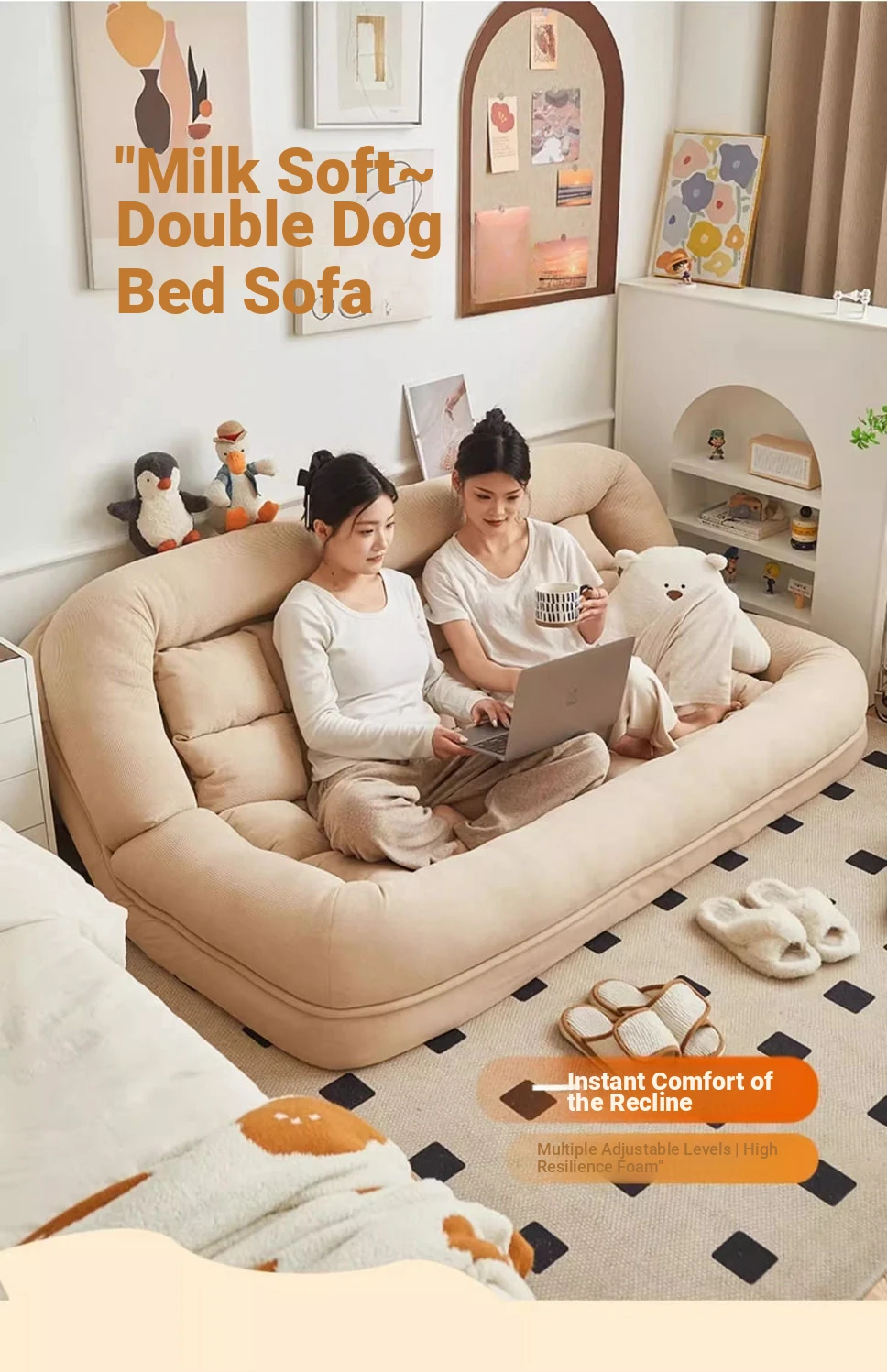 Luxury x beige [free large cushion x2] oversized [180x 130] multi-gear adjustment