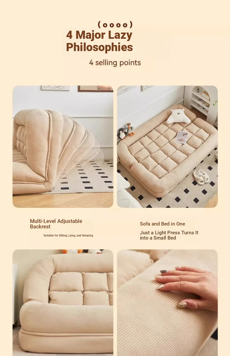 Luxury x beige [free large cushion x2] medium [120x 120] multi-gear adjustment