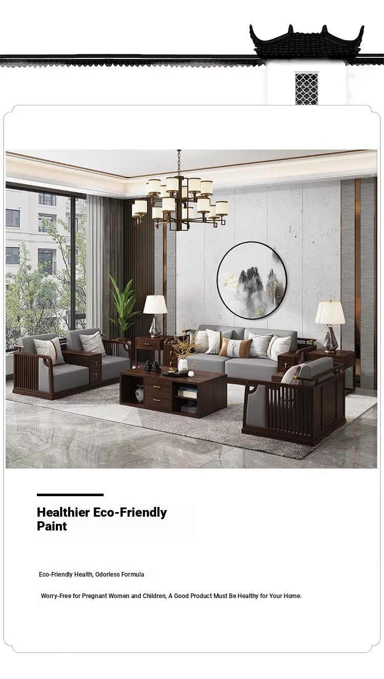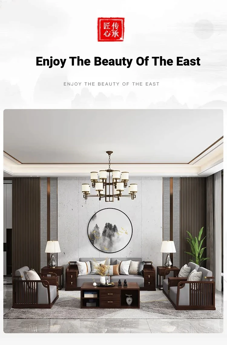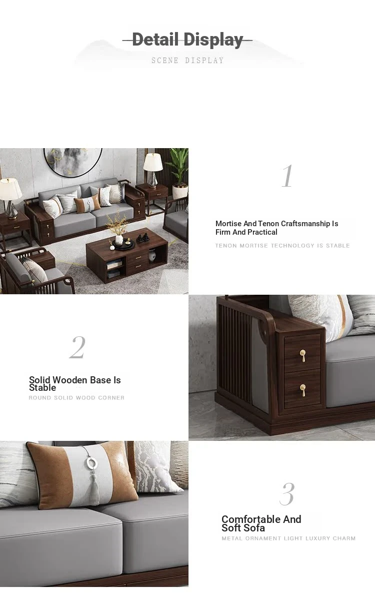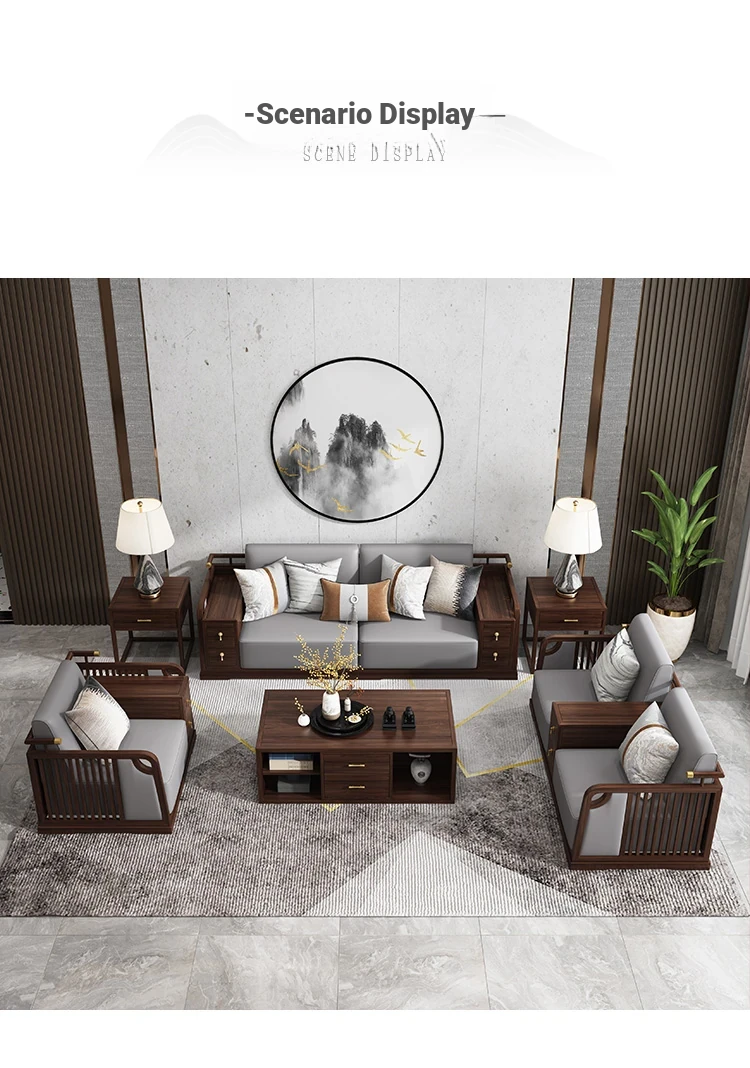 2025 New Luxury Modern Chinese Leather Sofa - Minimalist Solid Wood Design for Villas, Featuring Elegant Black Walnut Finish for a Touch of Sophistication in Your Living Room.
