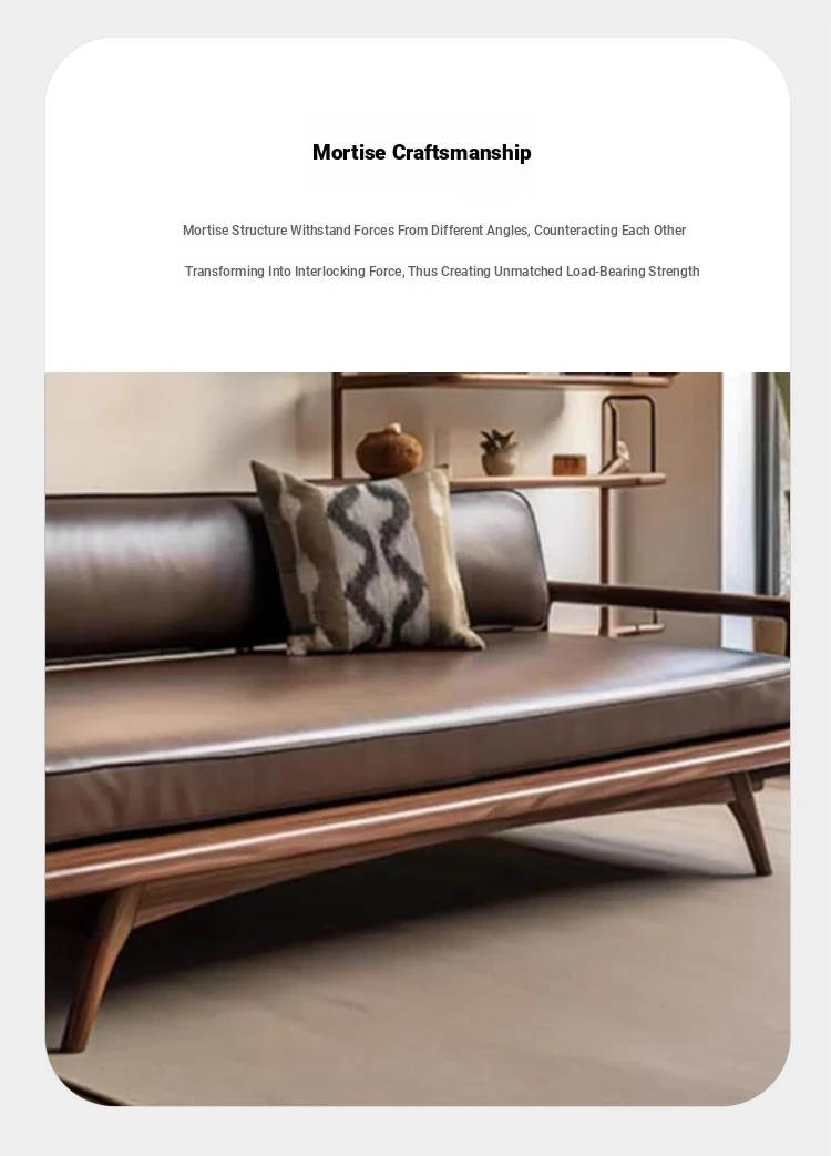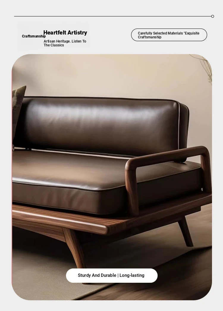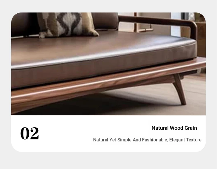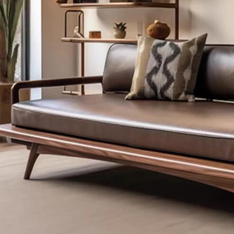 2025 New Luxury Modern Chinese Style Sofa for Villa - Elegant Solid Wood and Leather Three-Seater in Walnut Finish for Your Living Room