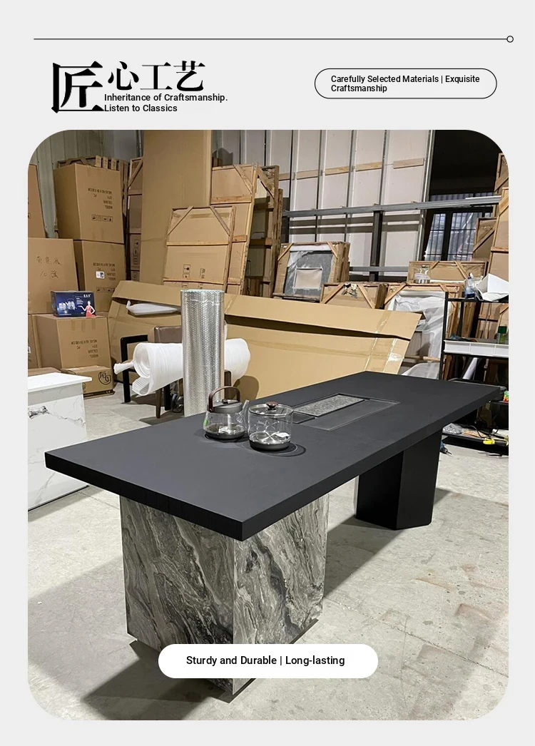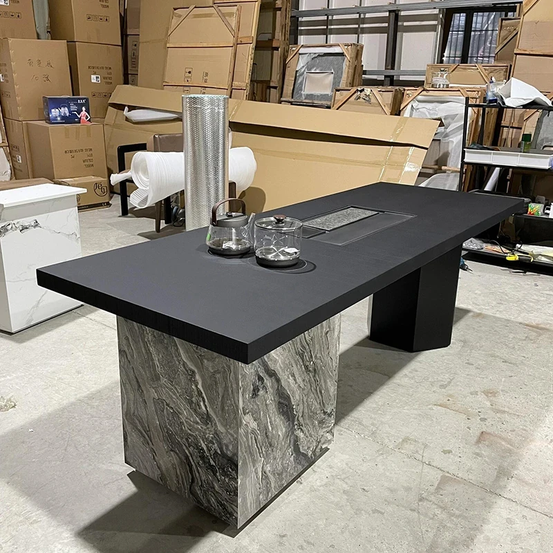 2025 New Luxury Modern High-End Rock Plate Tea Table - Elegant Solid Wood Chinese Style Tea Station for Home Brewing