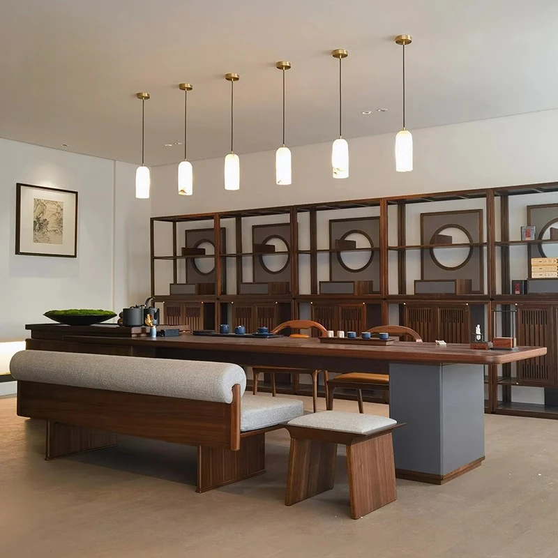 2025 New Luxury Walnut Tea Table - Modern High-End Design for Office & Living Room, 3 Meters Long, Perfect for Elevating Your Space