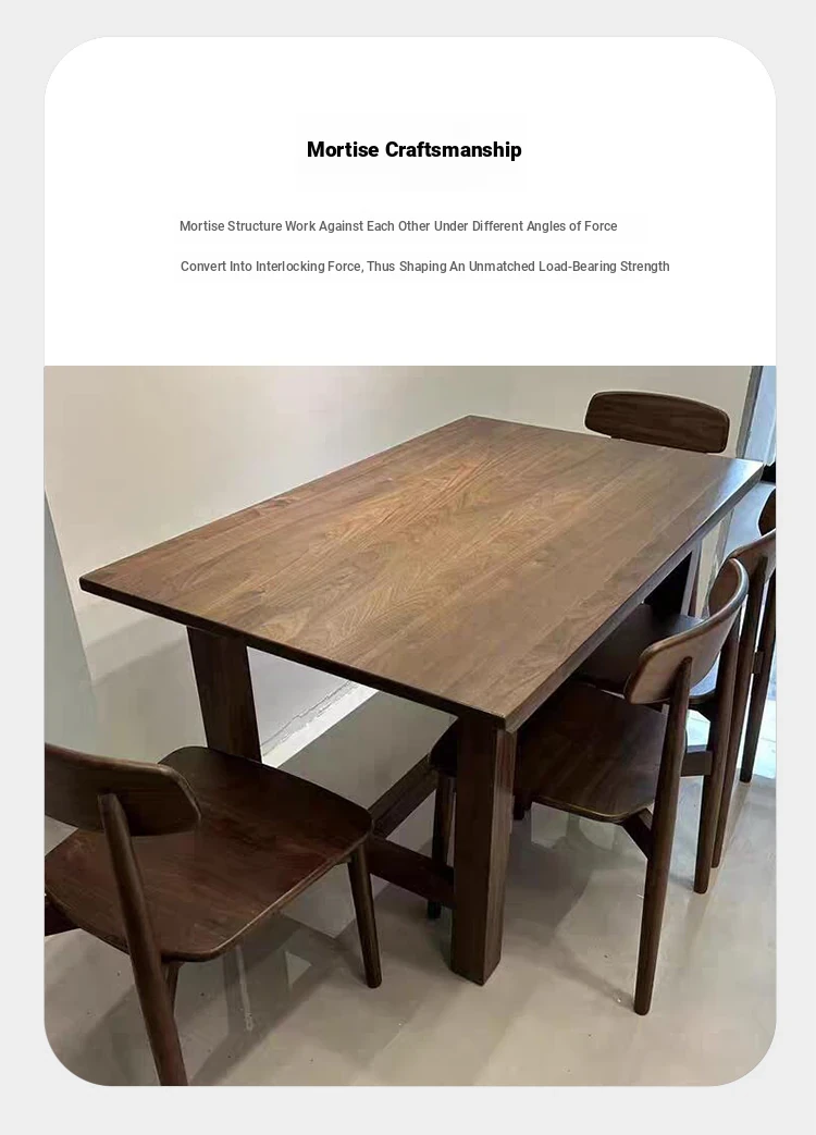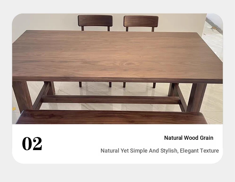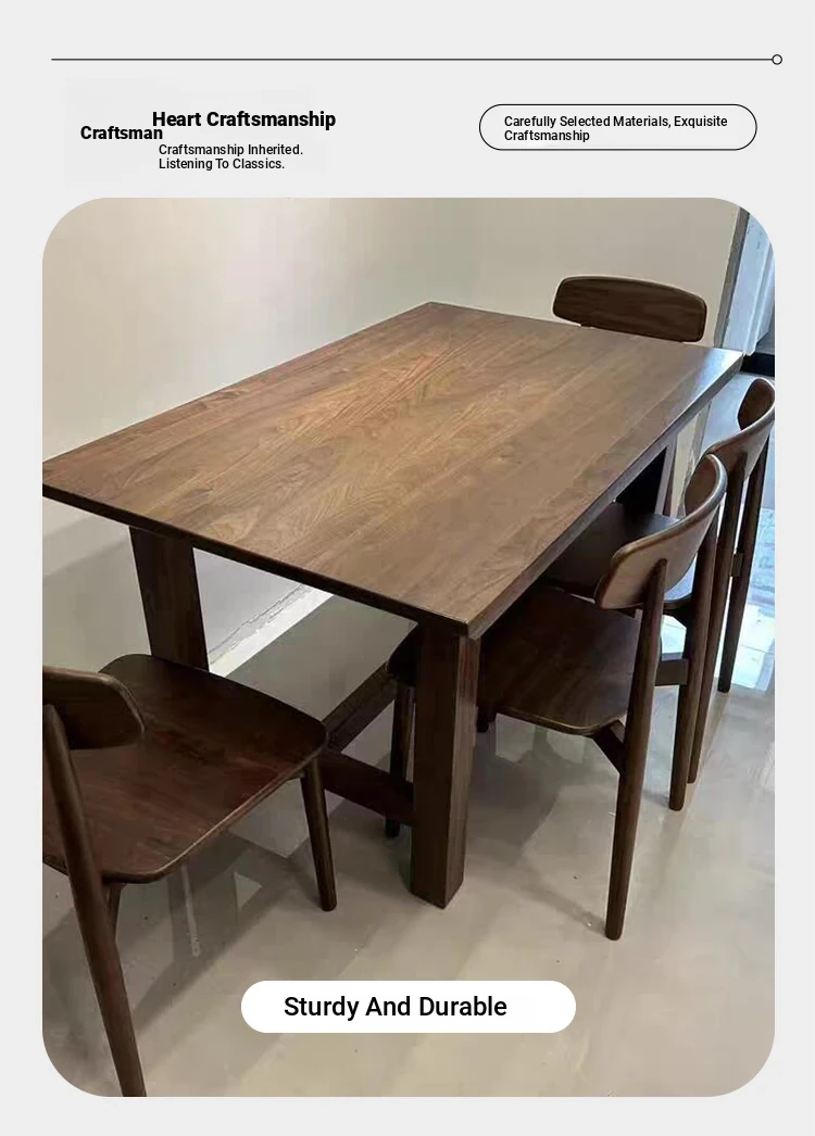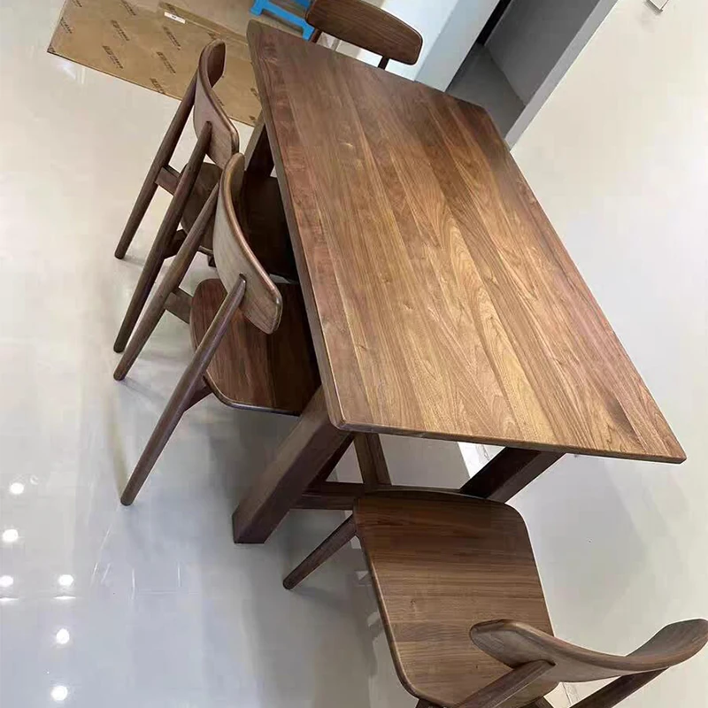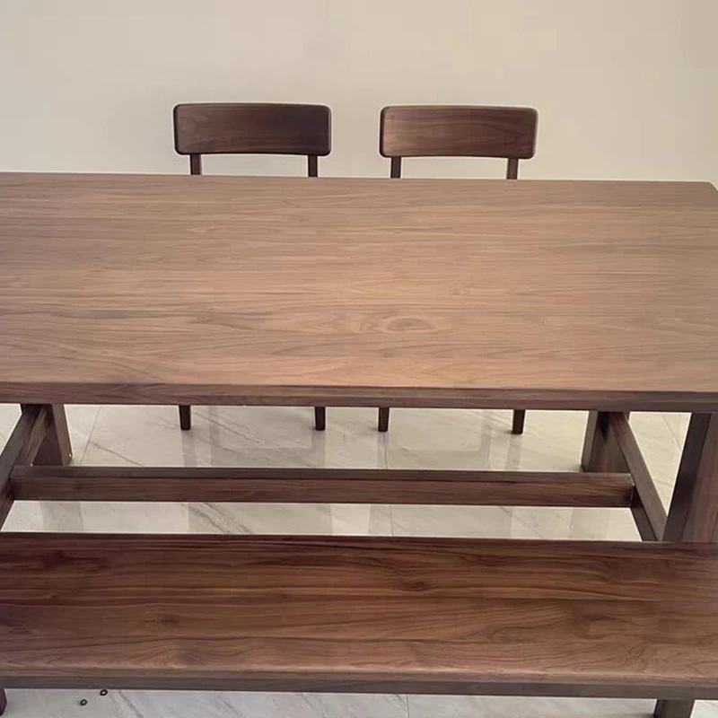 2025 New Modern Chinese Solid Wood Dining Table and Chair Set - Walnut Long Table for Simple and Elegant Home Living Room Dining Experience