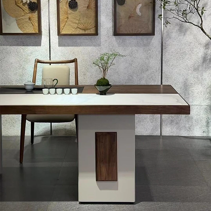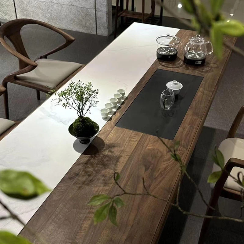 2025 New Modern Luxury Rock Plate Tea Table – Stylish Walnut Wood Tea Set for Home Living Room, New Chinese Style Solid Wood Tea Brewing Station