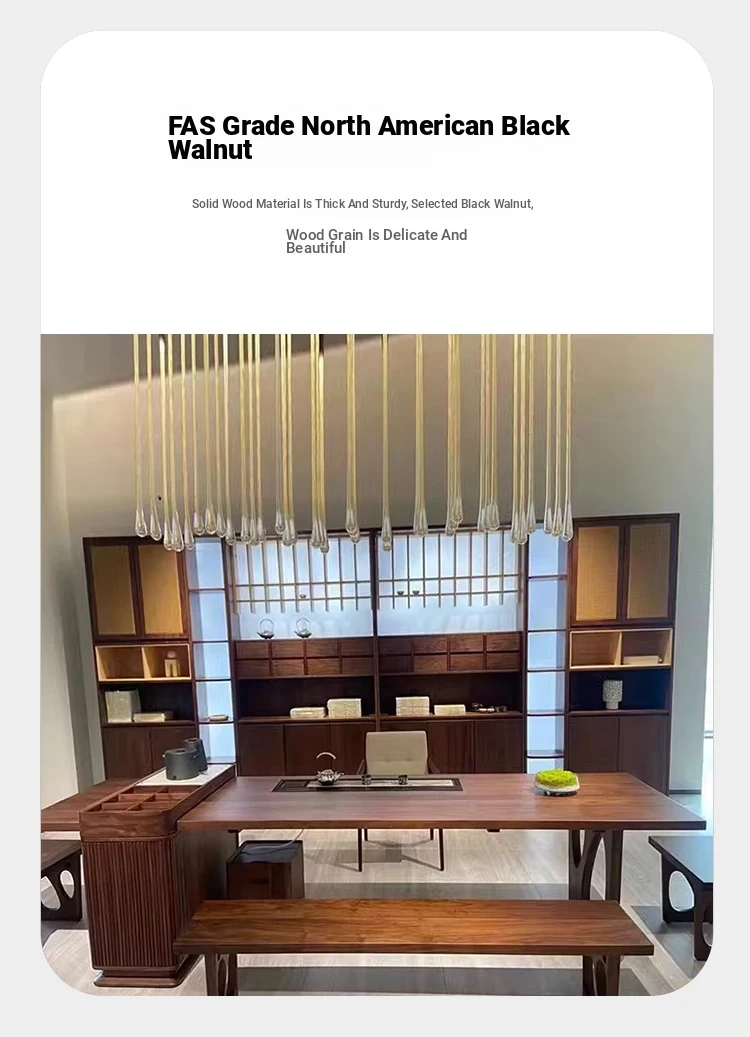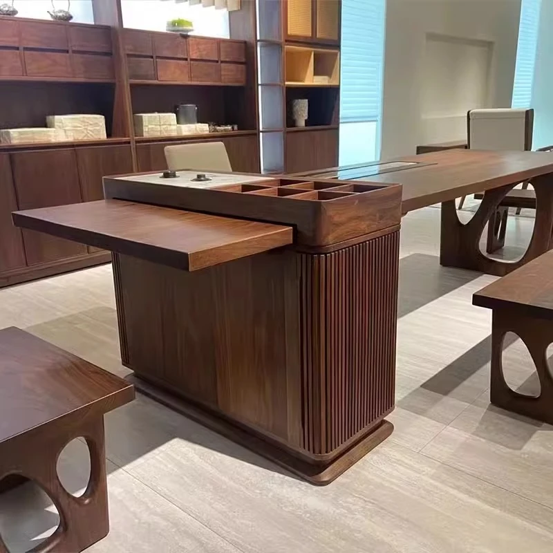 2025 New Modern Luxury Tea Table – Walnut Wood Tea Setup for Elegant Home Living Room, New Chinese Style Solid Wood Tea Table