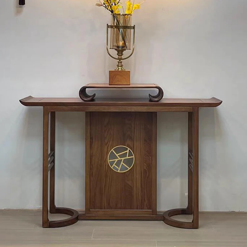 2025 New Modern Minimalist Chinese Style Entrance Console Table - Solid Walnut Wood Hallway Table for Home Decor