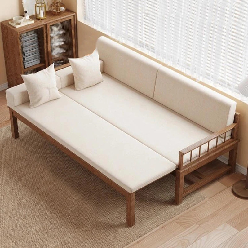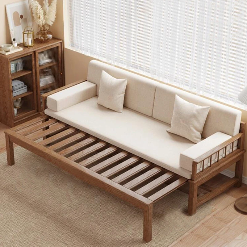 2025 New Modern Minimalist Fabric Sofa Bed for Living Room – Versatile Walnut Wood Lounger for Small Spaces