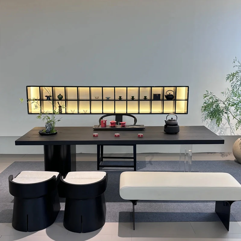 2025 New Modern Minimalist Solid Wood Chinese-Style Tea Table for Home and Office Reception, Featuring Elegant Acrylic Design