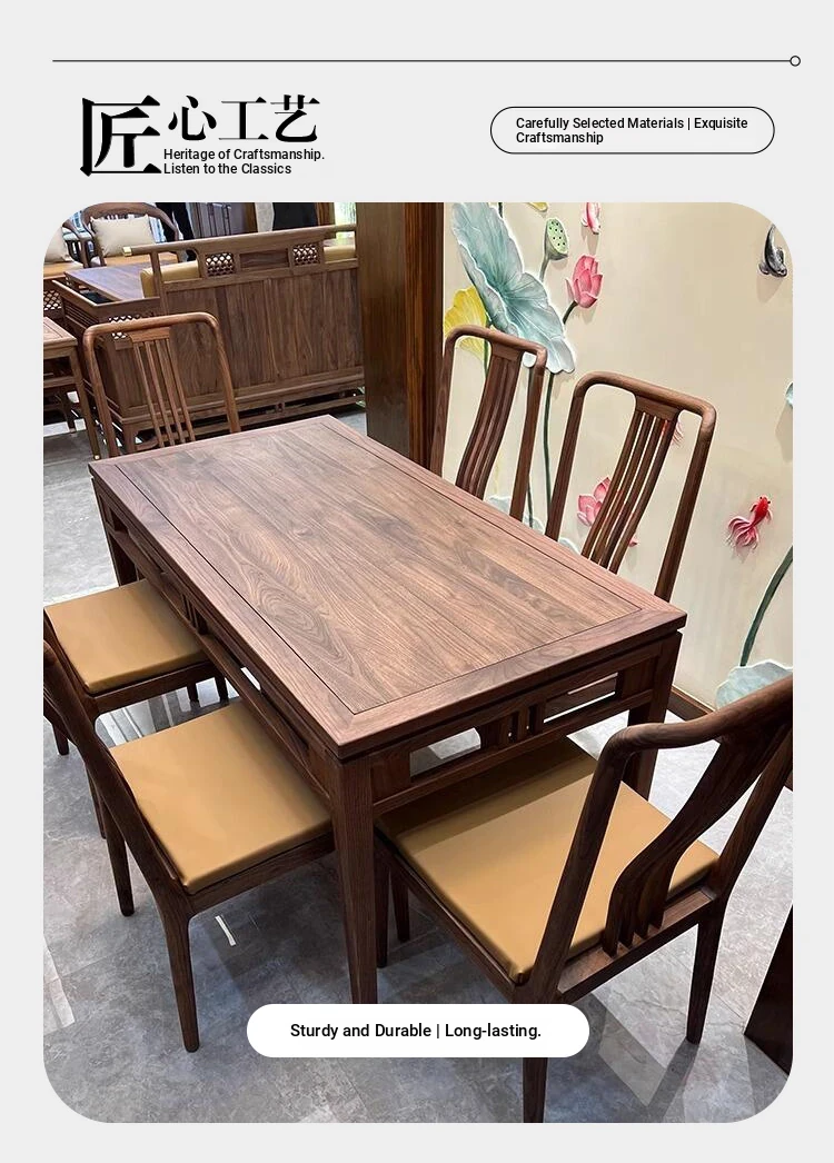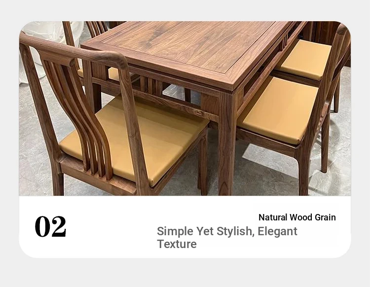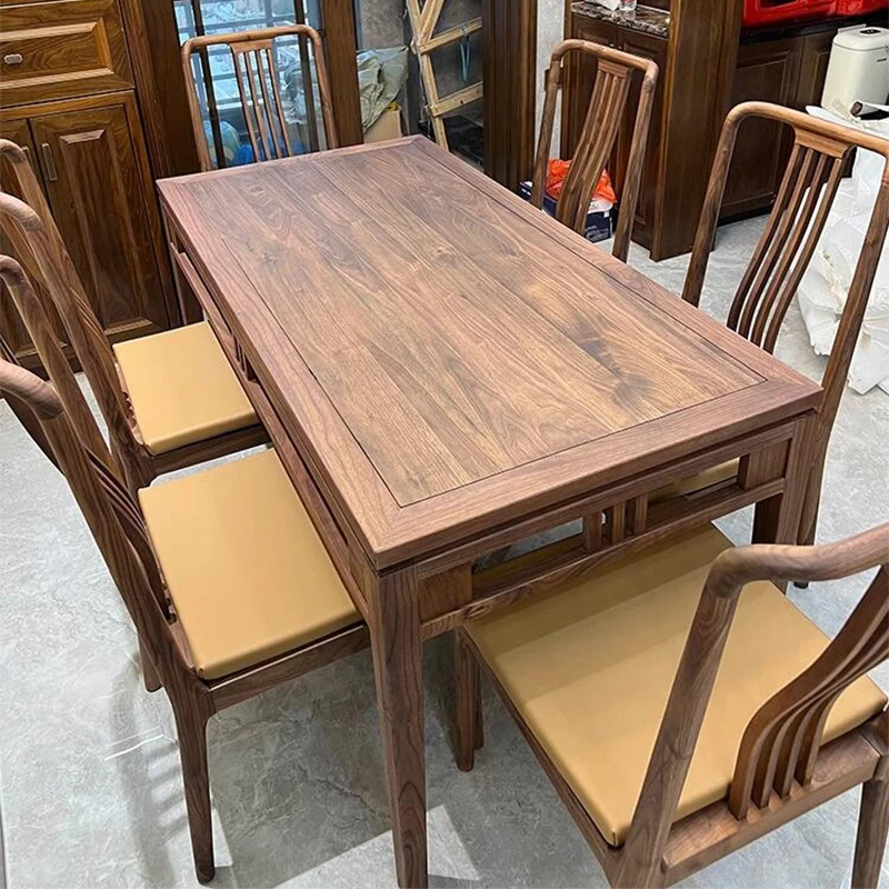 2025 New Modern Minimalist Solid Wood Dining Table and Chair Set - Rectangular Walnut Long Table for Home Dining Room