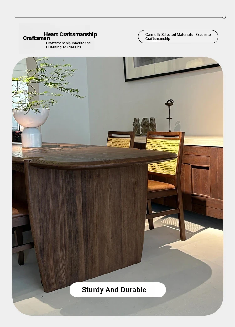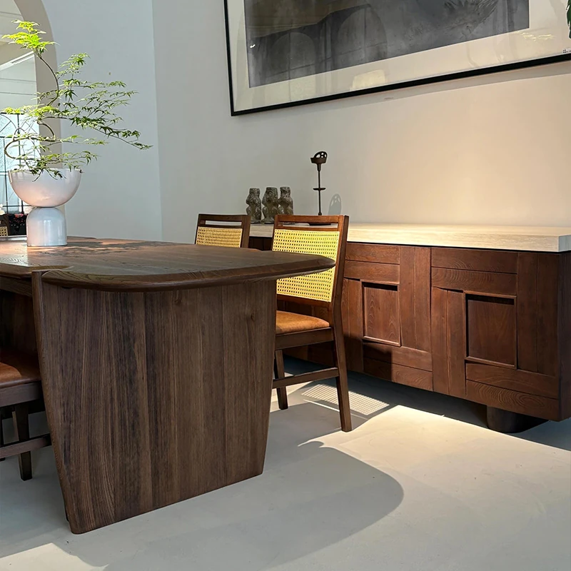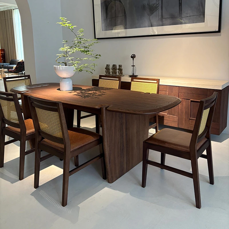 2025 New Modern Minimalist Solid Wood Dining Table and Chair Set - Walnut Long Dining Table for Home Living Room