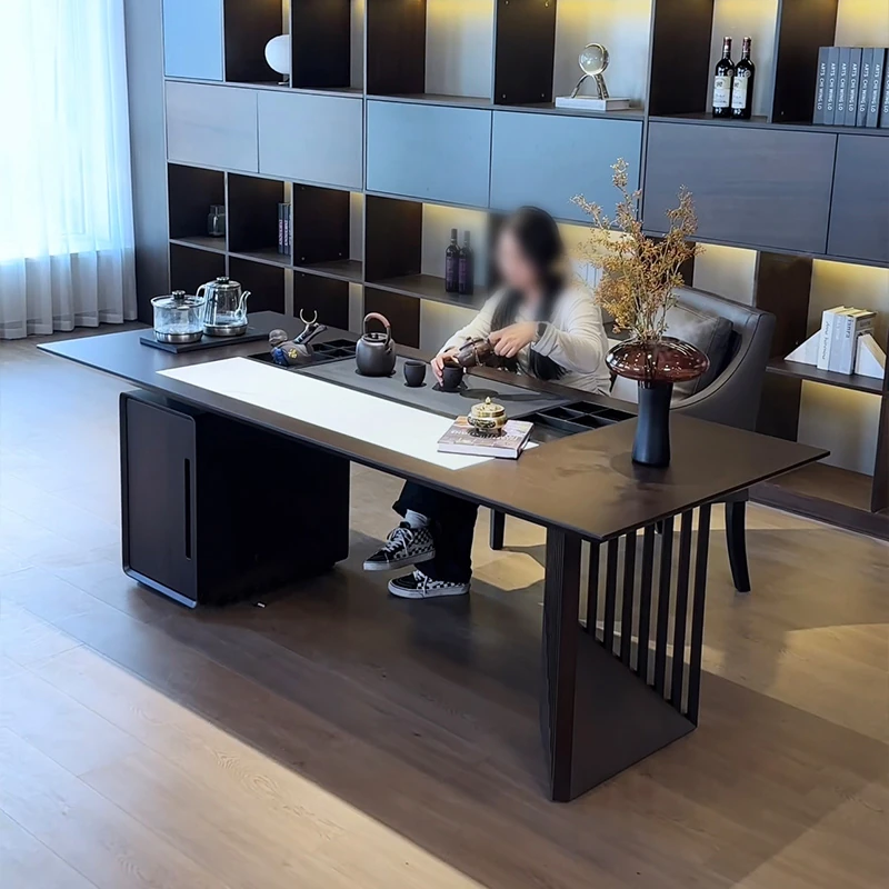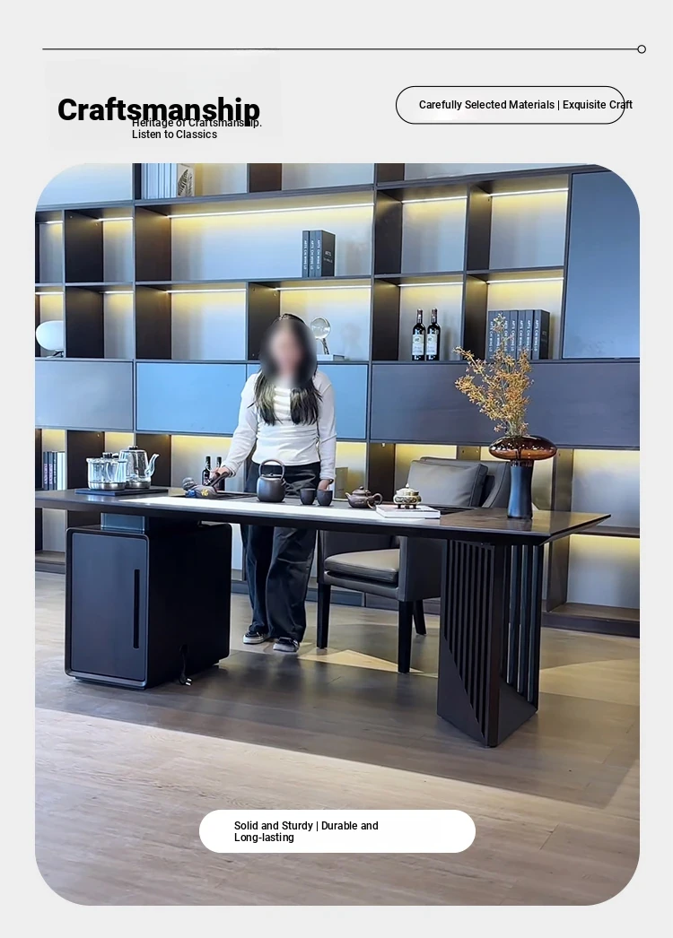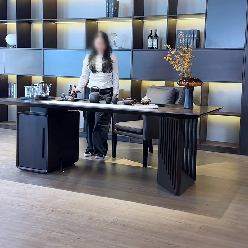 2025 New Modern Minimalist Solid Wood Rock Plate Tea Table - Walnut Tea Brewing Table for Living Room, Perfect for Home Use