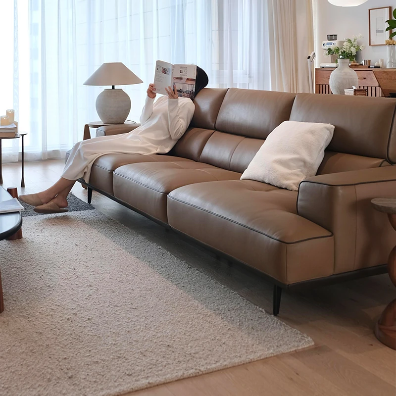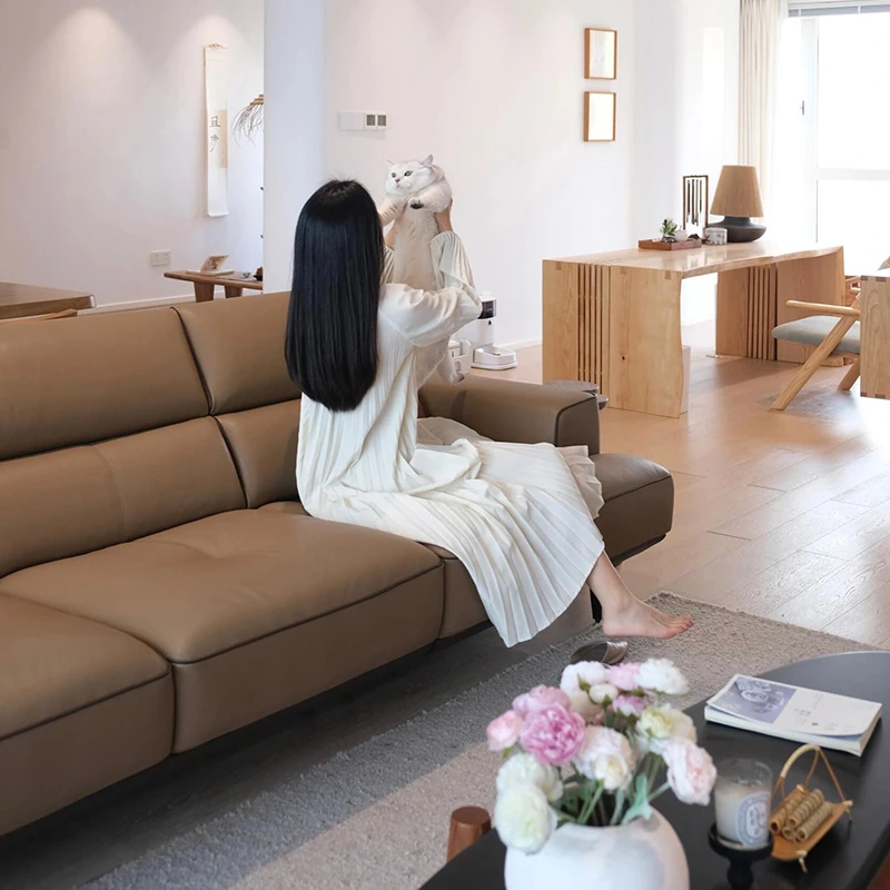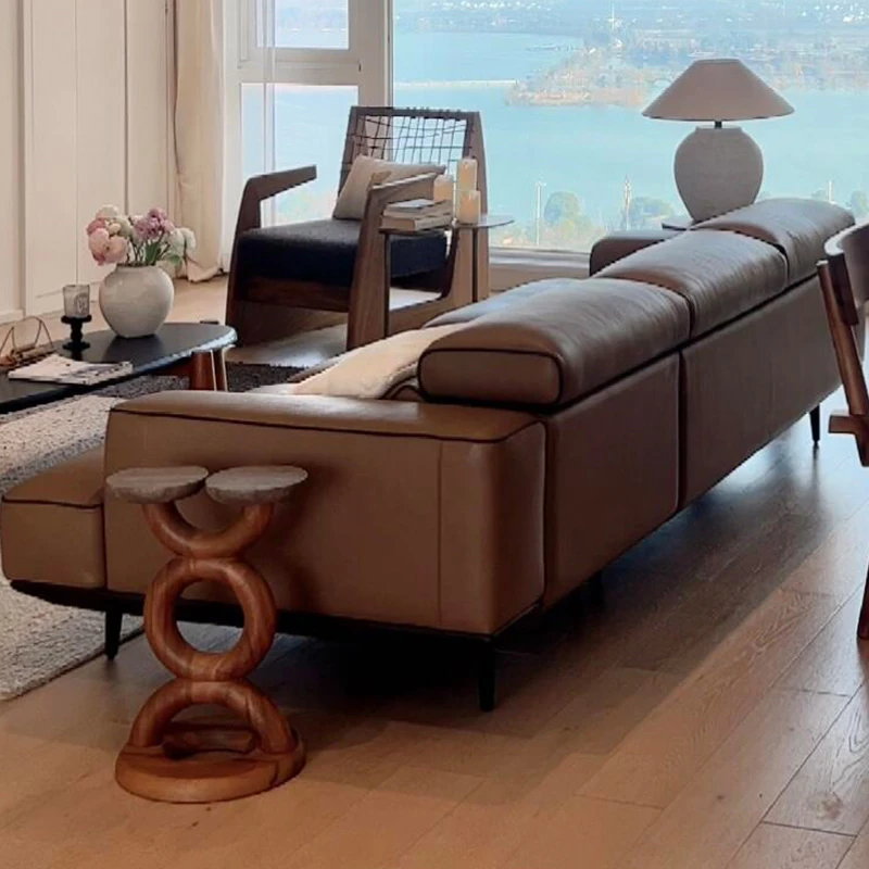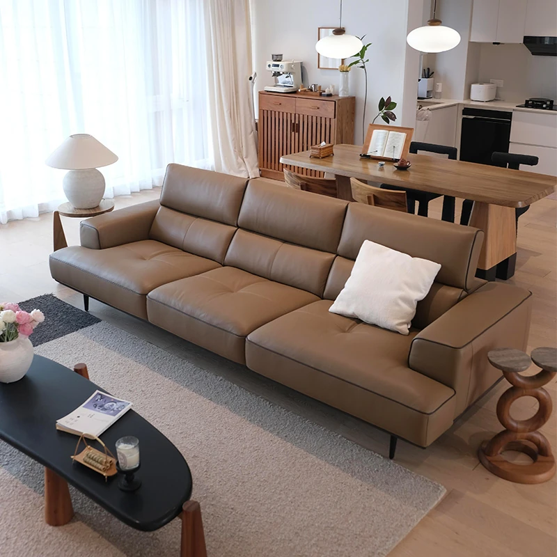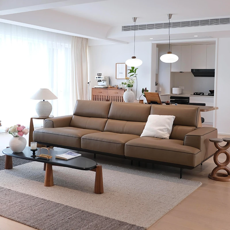 2025 New Modern Minimalist Solid Wood Sofa - Walnut Veneer Upholstered Living Room Sofa Set for Home Use