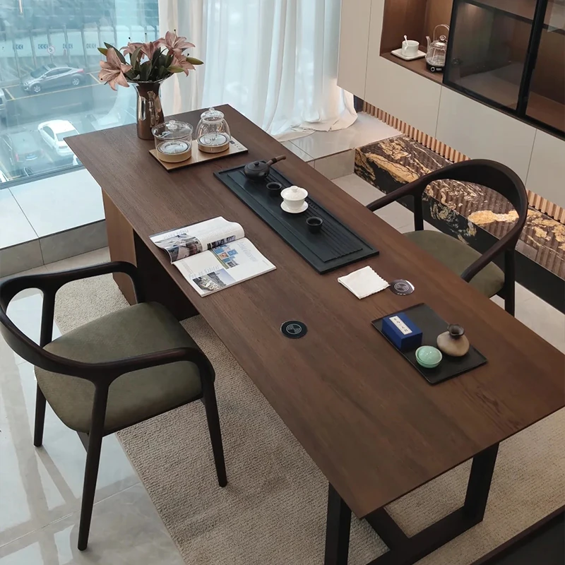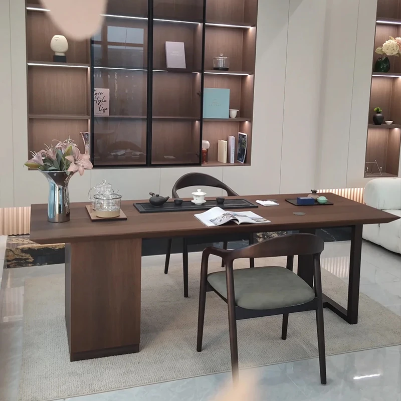 2025 New Premium Multi-Functional Walnut Desk & Tea Table - Stylish Minimalist Design for Your Home Office and Living Room Tea Space