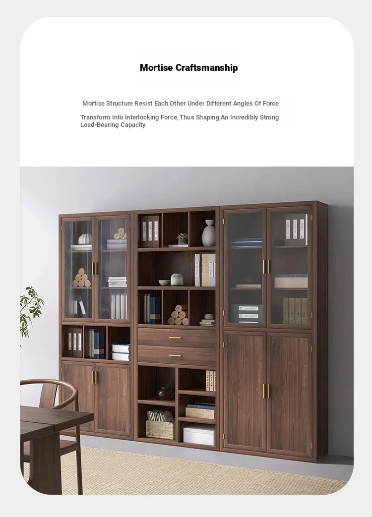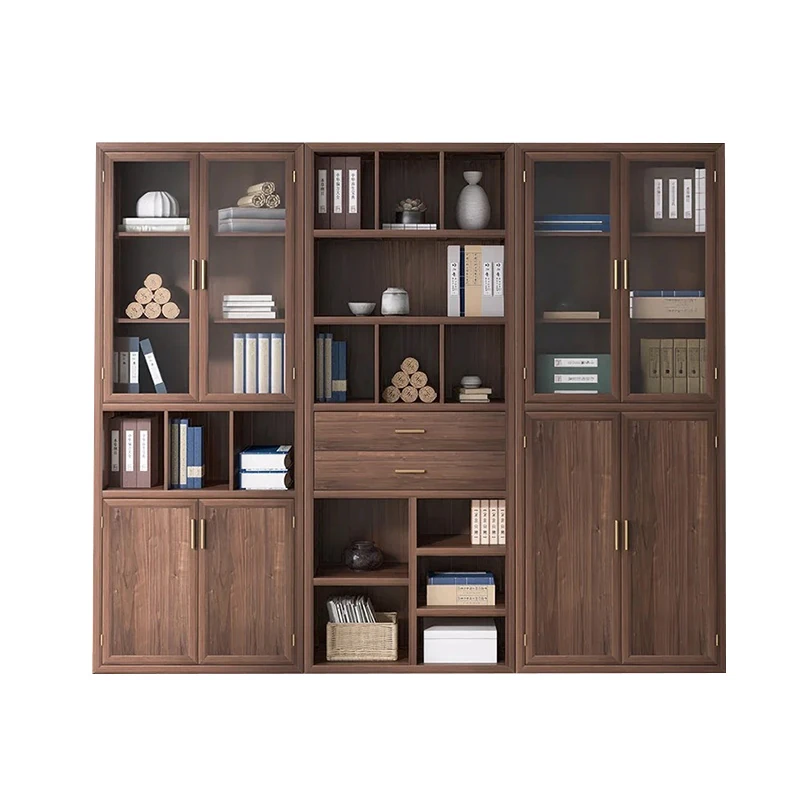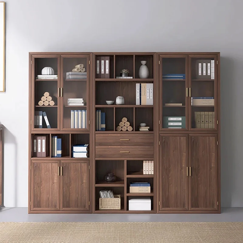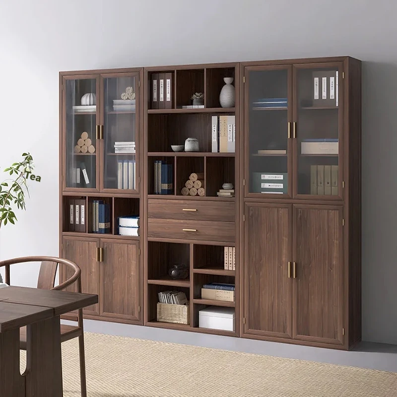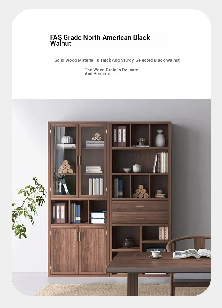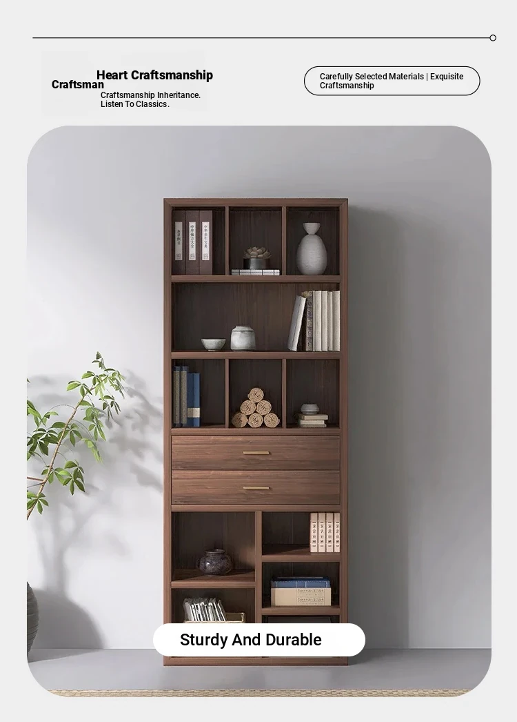 2025 New Solid Wood Bookshelf - Modern Chinese Walnut Wood Display Cabinet Combo for Tea Room & Tea Cake Storage
