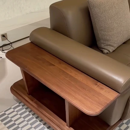 2025 New Style Solid Wood Sofa - Modern Minimalist 3-Seater Leather Couch for Home, Walnut Finish