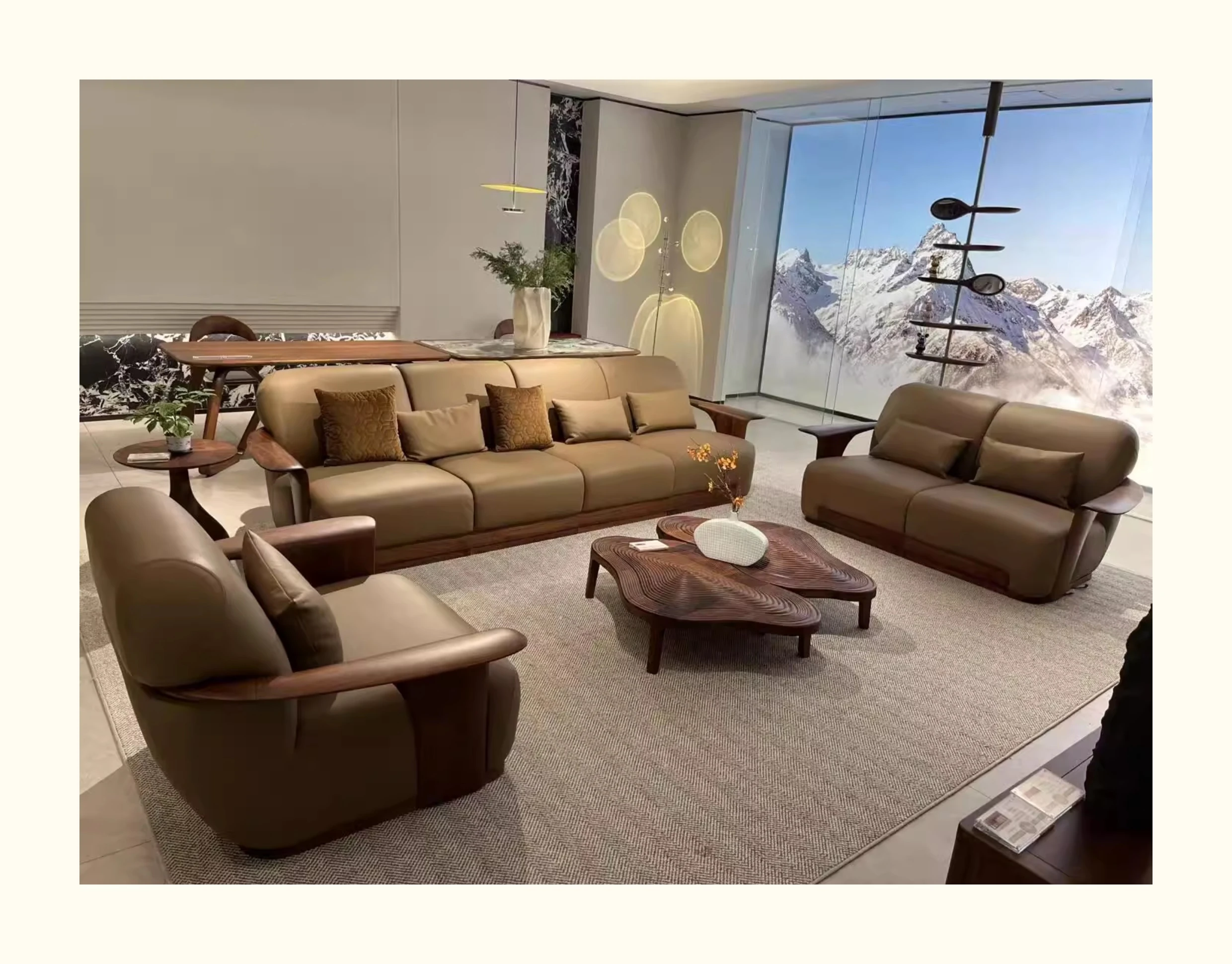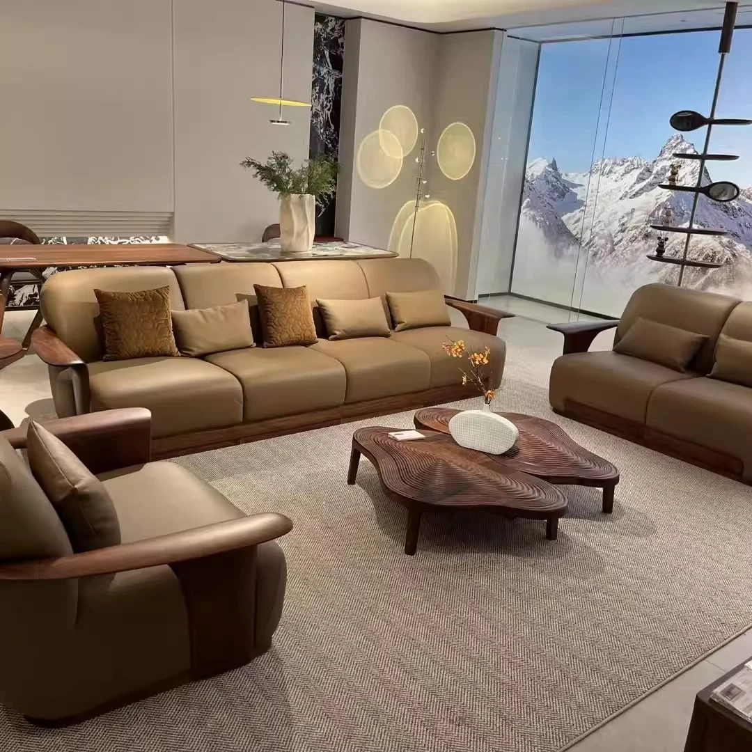 2025 New Style Solid Wood Sofa - Modern Minimalist Walnut Wood Sectional Sofa Set for Living Room, Perfect for Home Décor