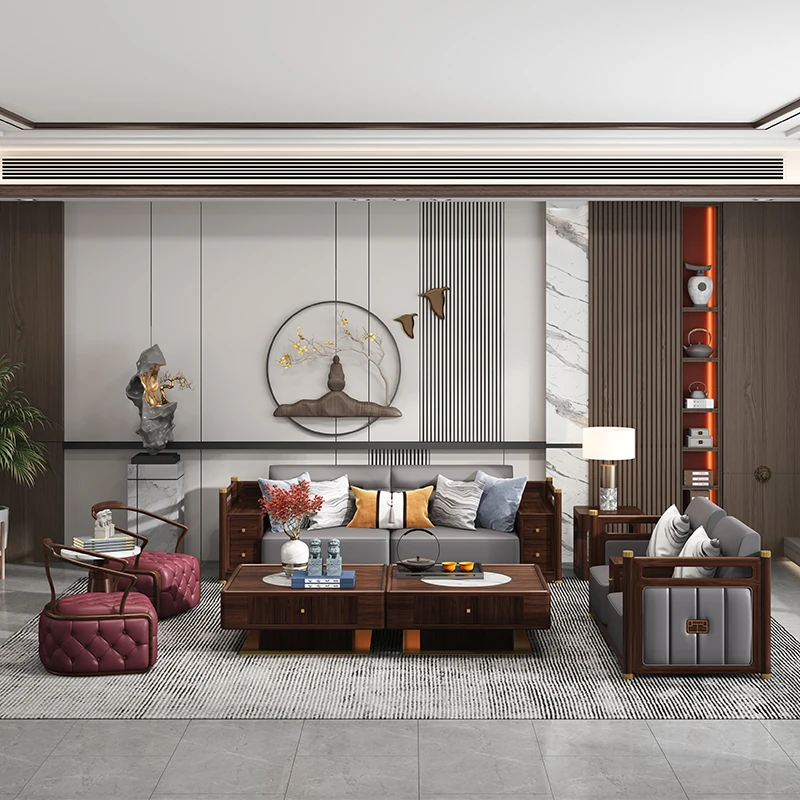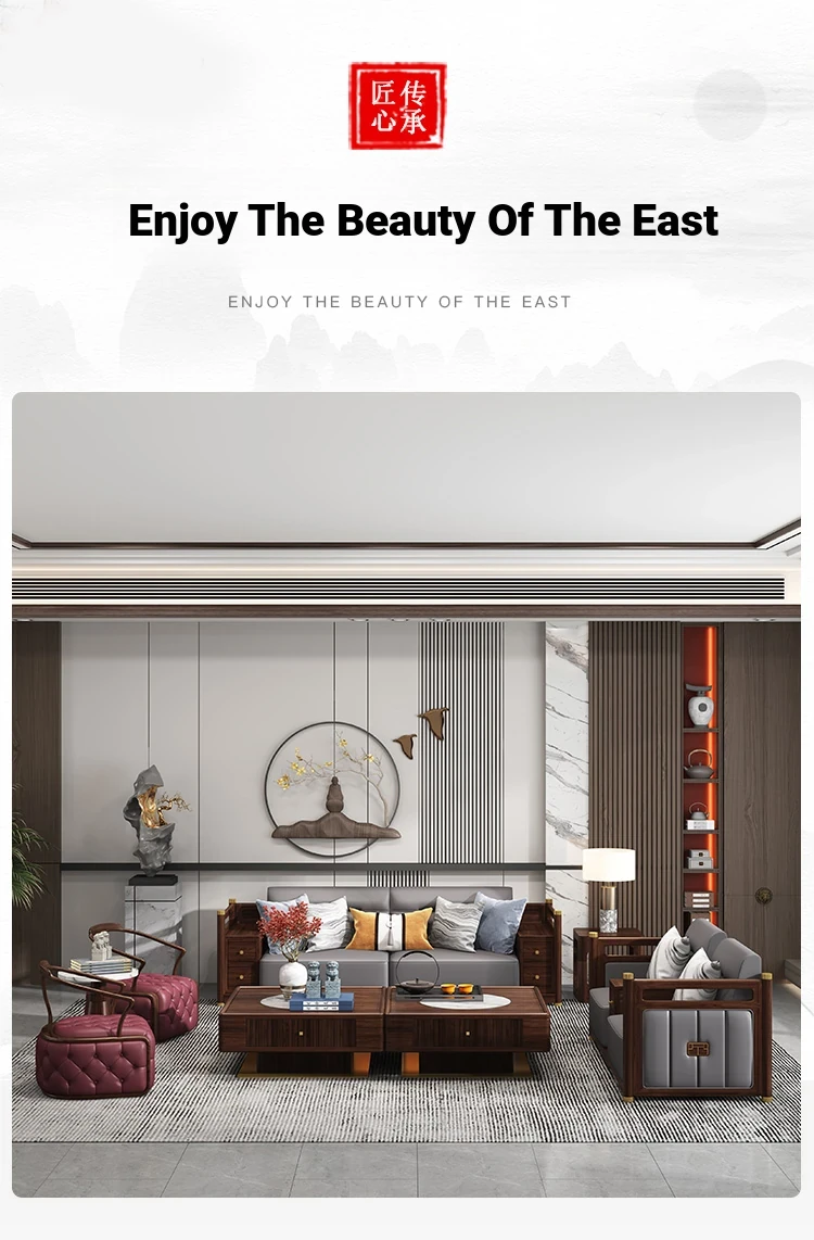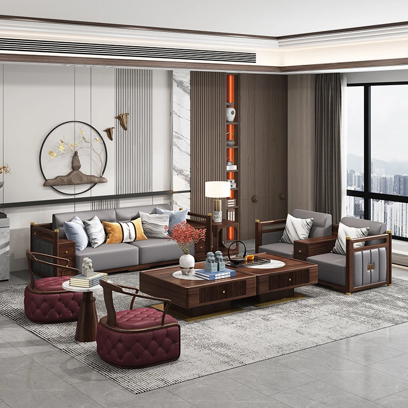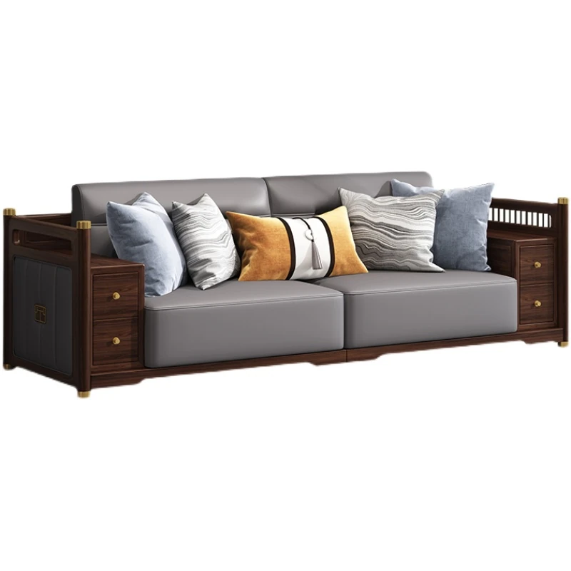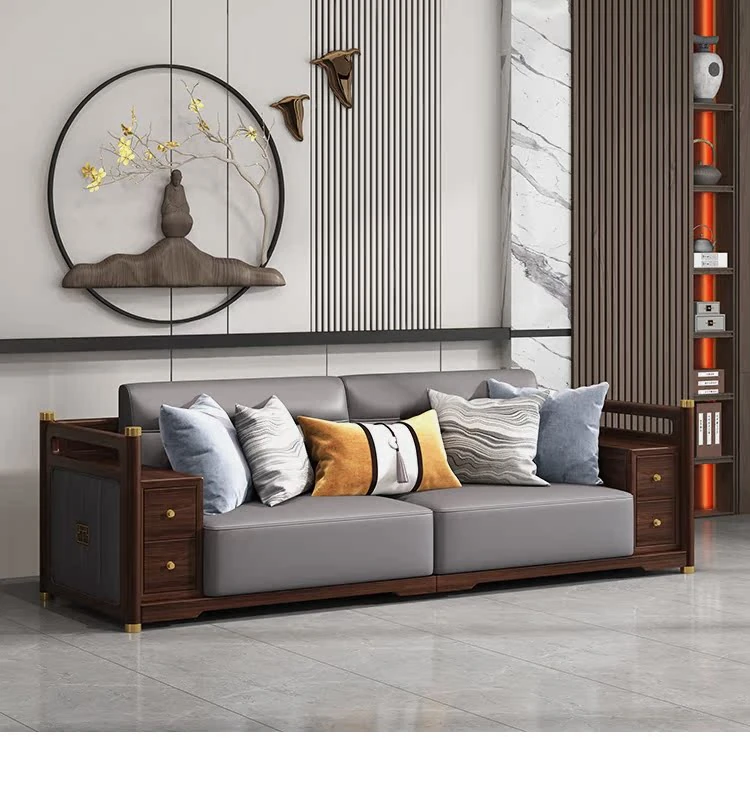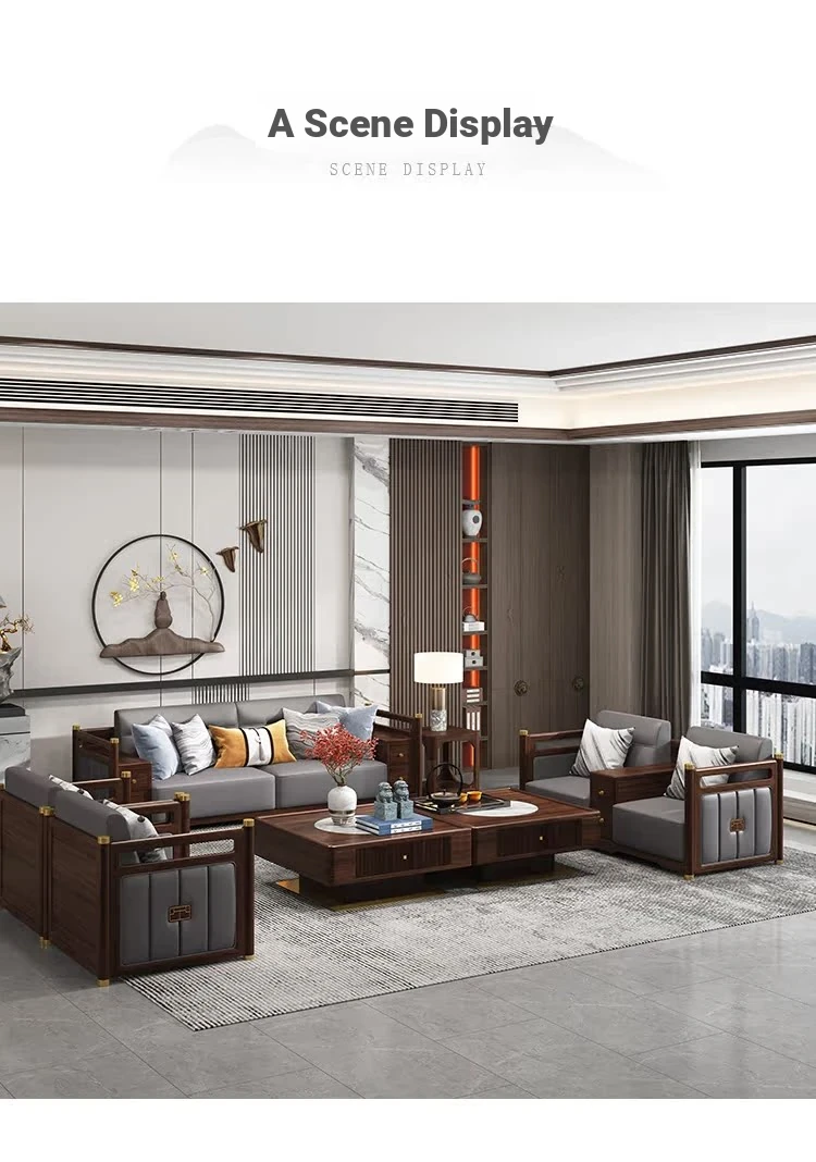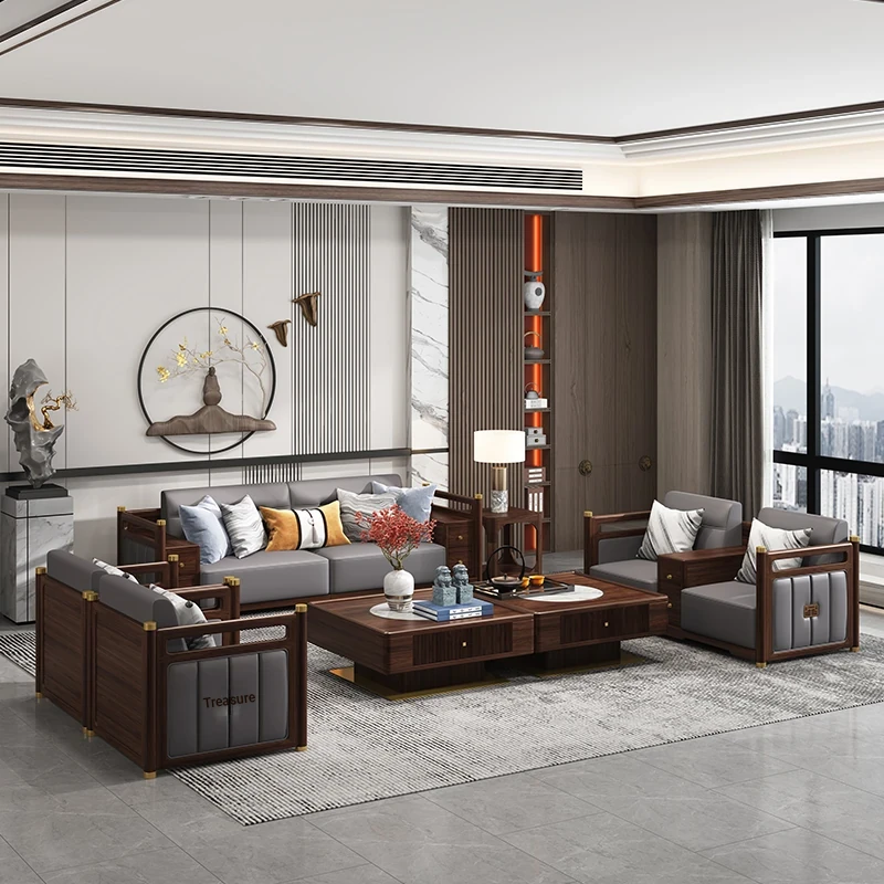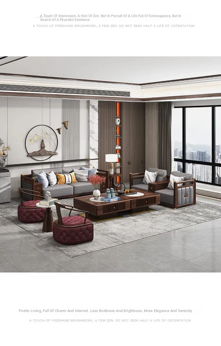 2025 New Stylish Chinese Sofa - Luxury Solid Wood in Black Walnut Veneer for Minimalist Villa Living Room - Elevate Your Space with Sophistication and Comfort!