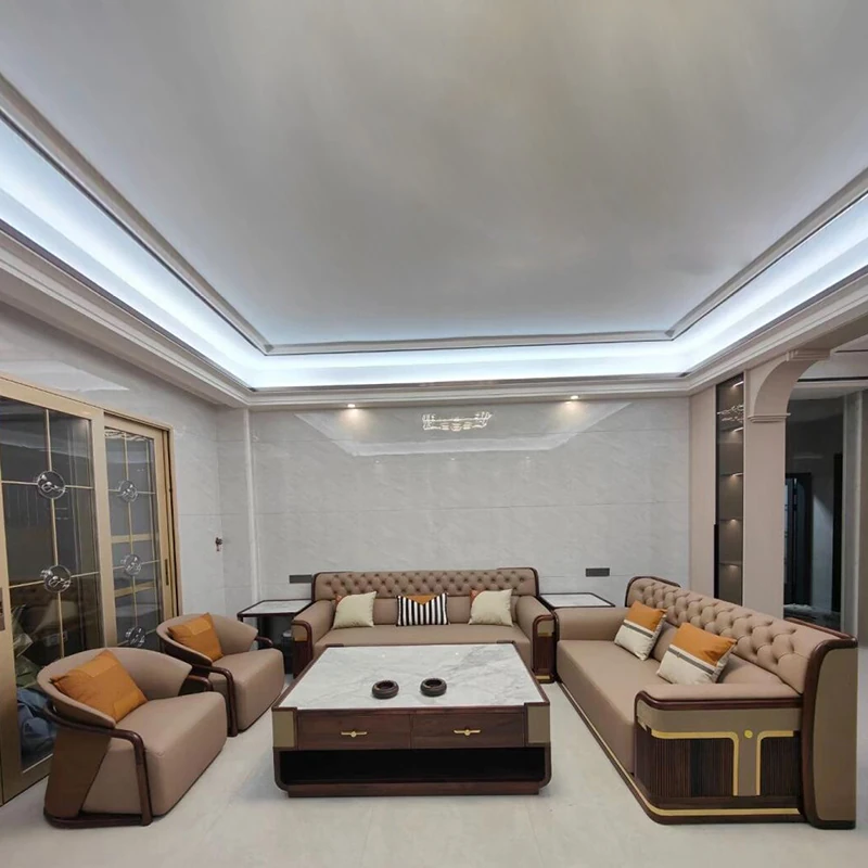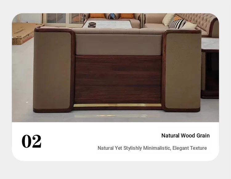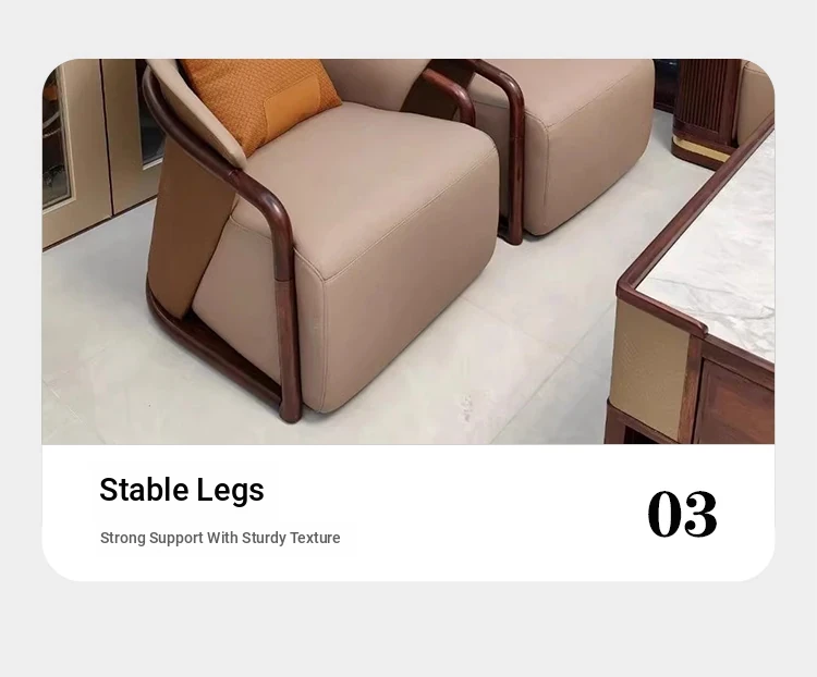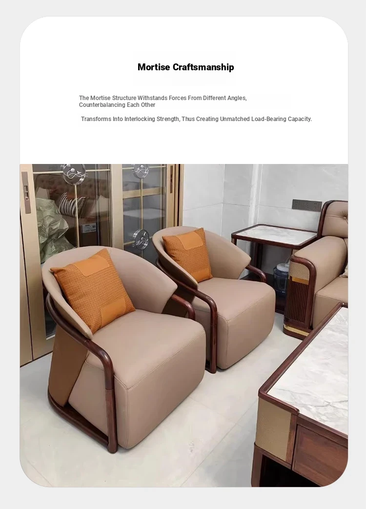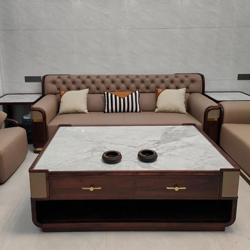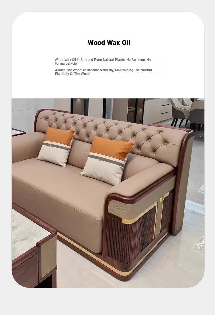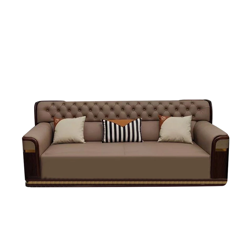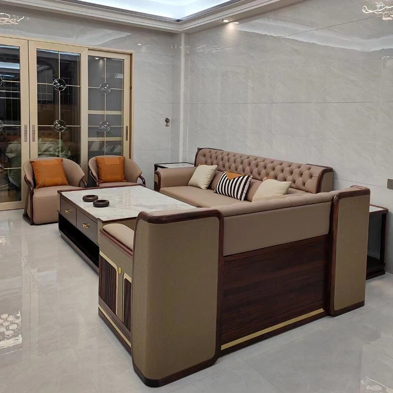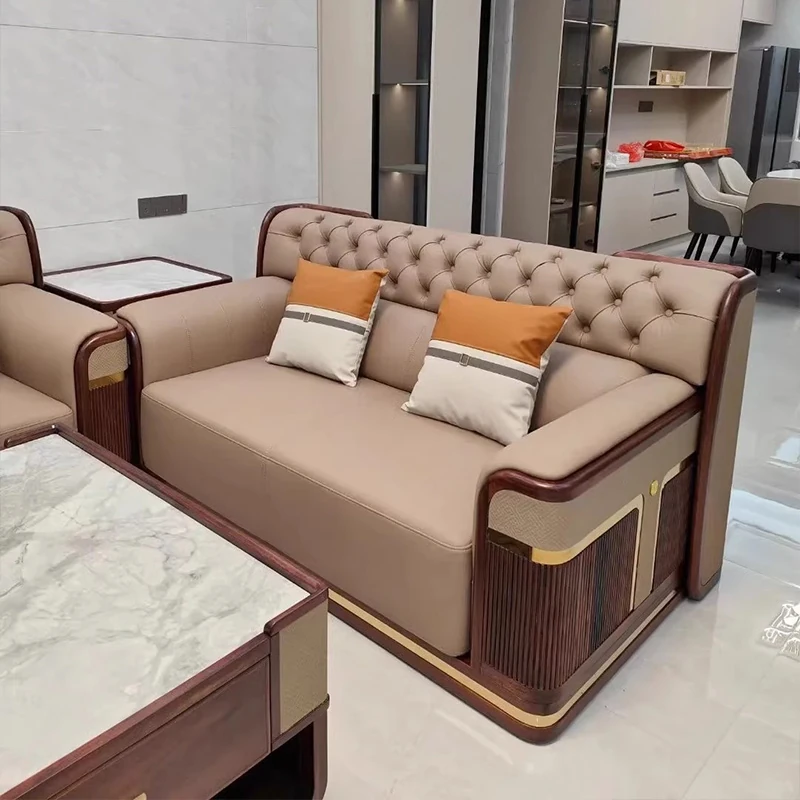 2025 New Villa-Style Sofa: Luxe Modern Chinese Design with Solid Wood and Leather, Walnut Three-Seat Sofa for Elegant Living Rooms