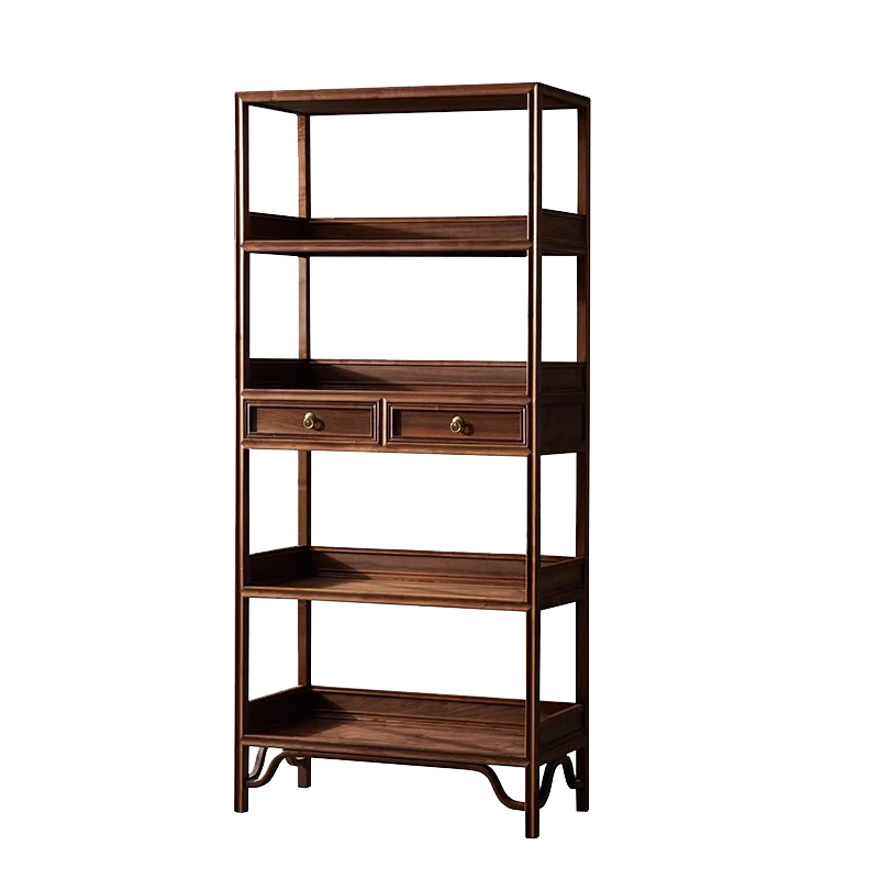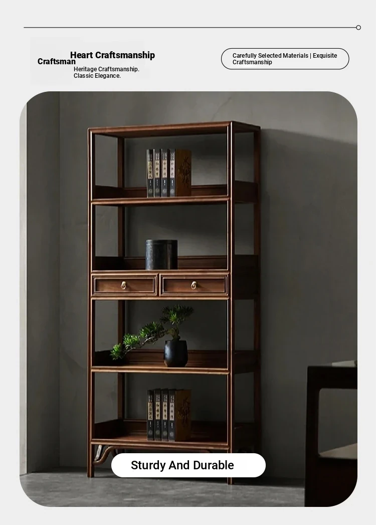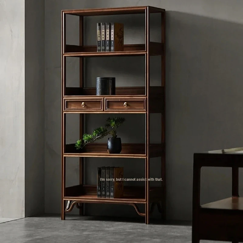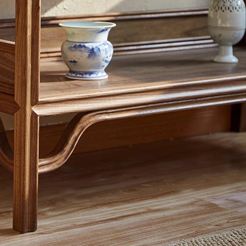2025 New Walnut Wood Display Cabinet - Minimalist Solid Wood Showcase for Tea and Snacks, Elegant Chinese Style Multi-Functional Tea Room Storage Unit