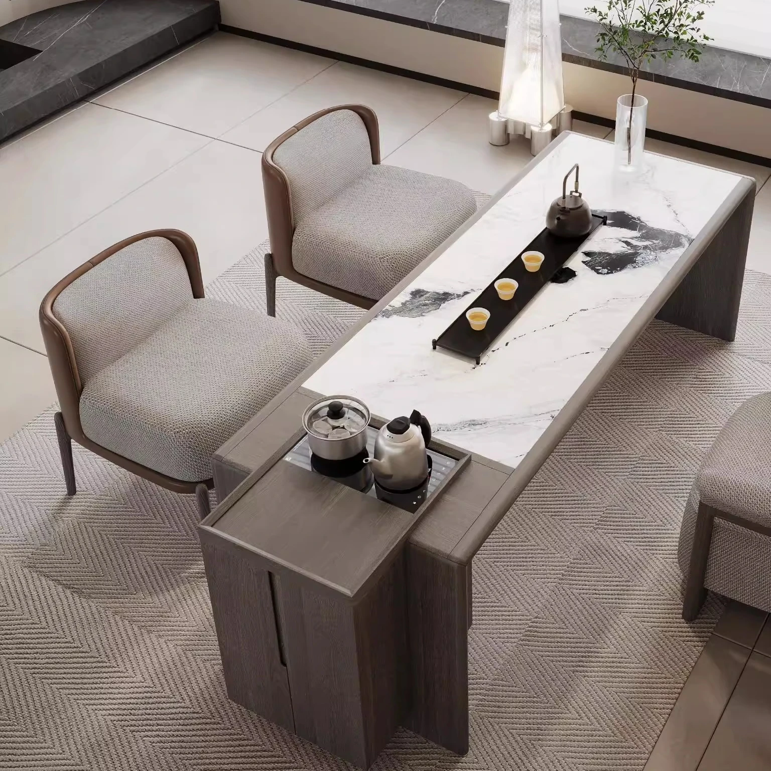 2025 New Walnut Wood Tea Table - Modern Minimalist Design, Solid Wood Tea Brewing Station, New Chinese Style Dining Table for Home Use