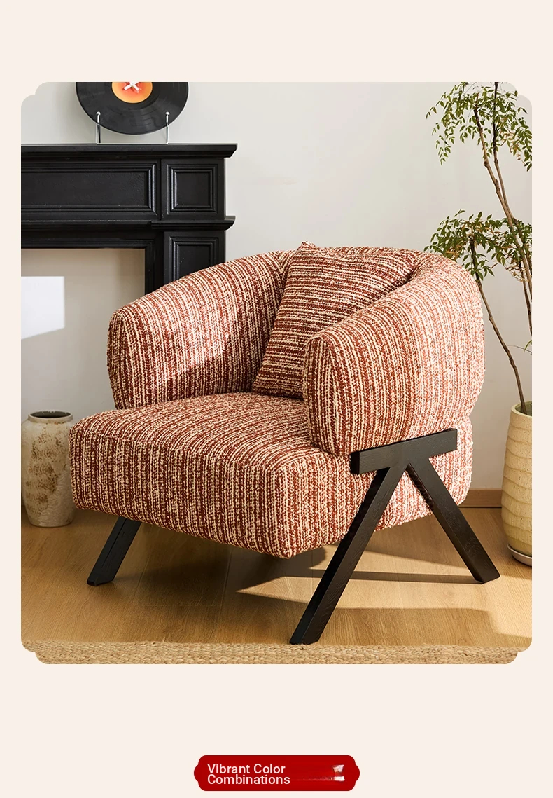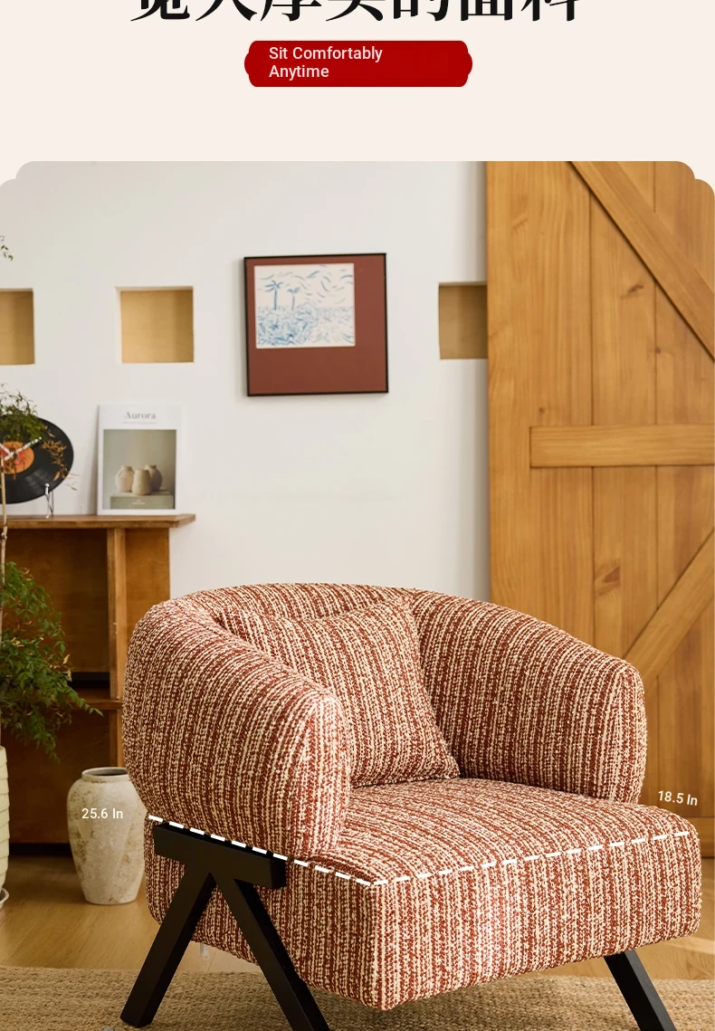 August Carpenter French Vintage Style Leisure Chair – Single Sofa for Bedroom, Living Room, and Balcony – Retro Guesthouse Armchair