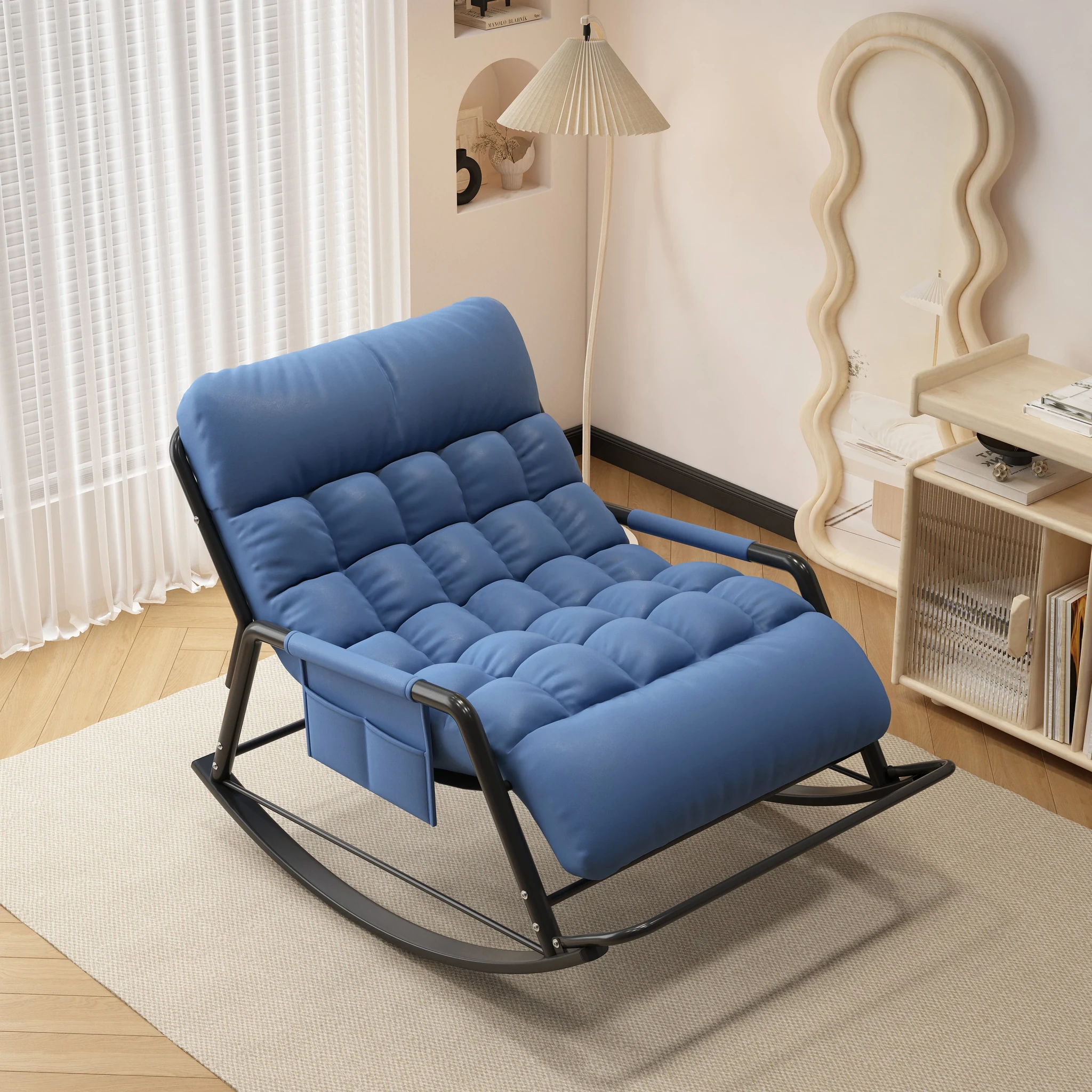 Single rocking chair with pedals-technology cloth [blue]]