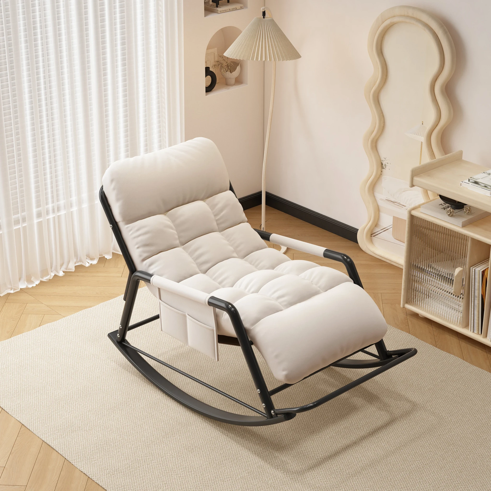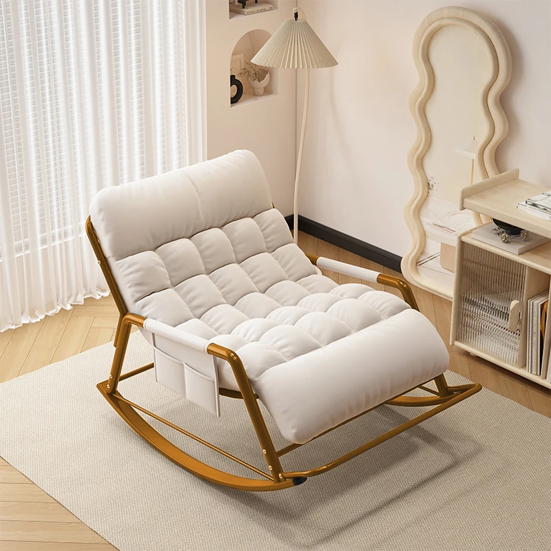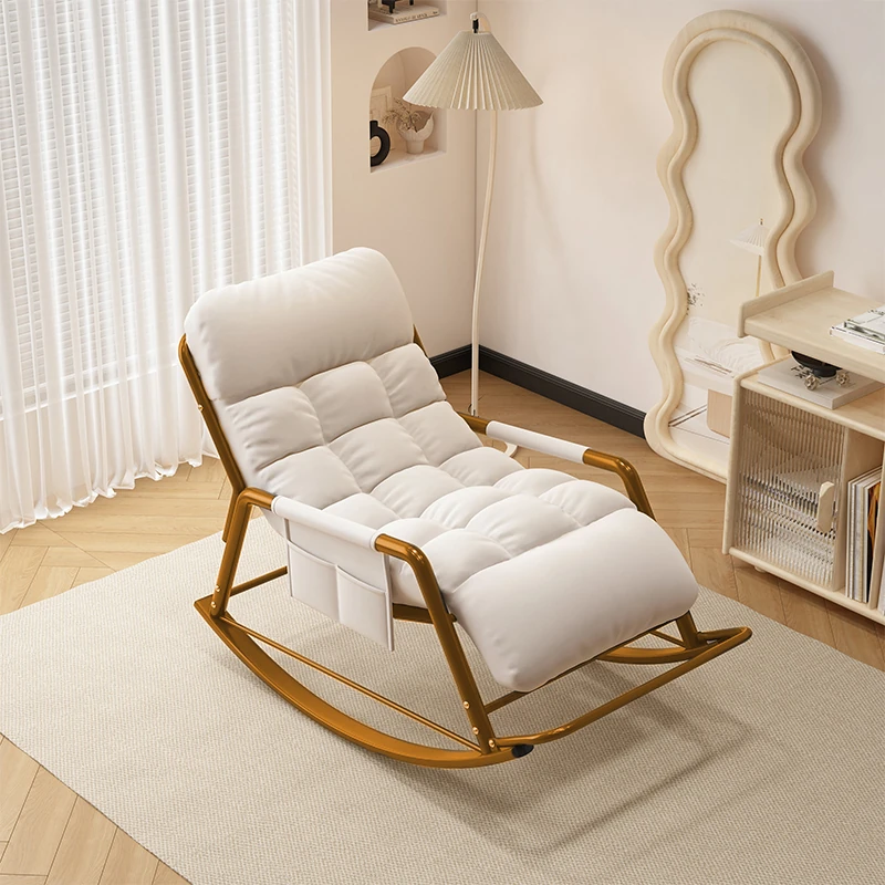 [Luxury Gold Leg] Single Rocking Chair with Foot-Technology Cloth [White]]