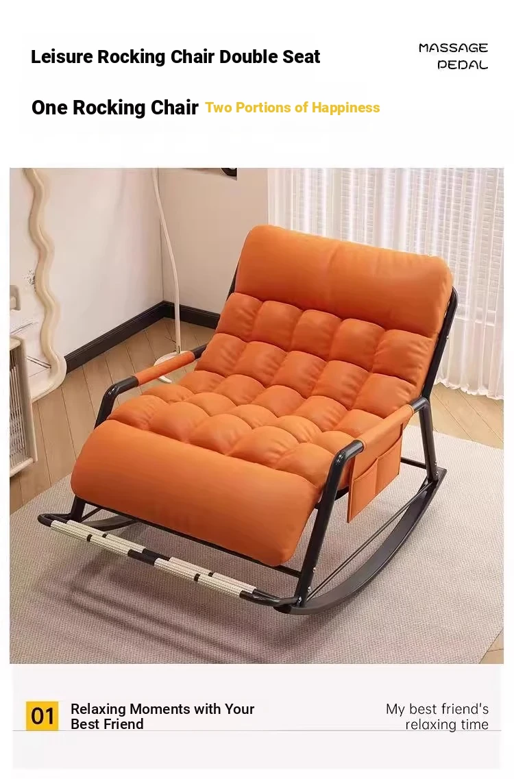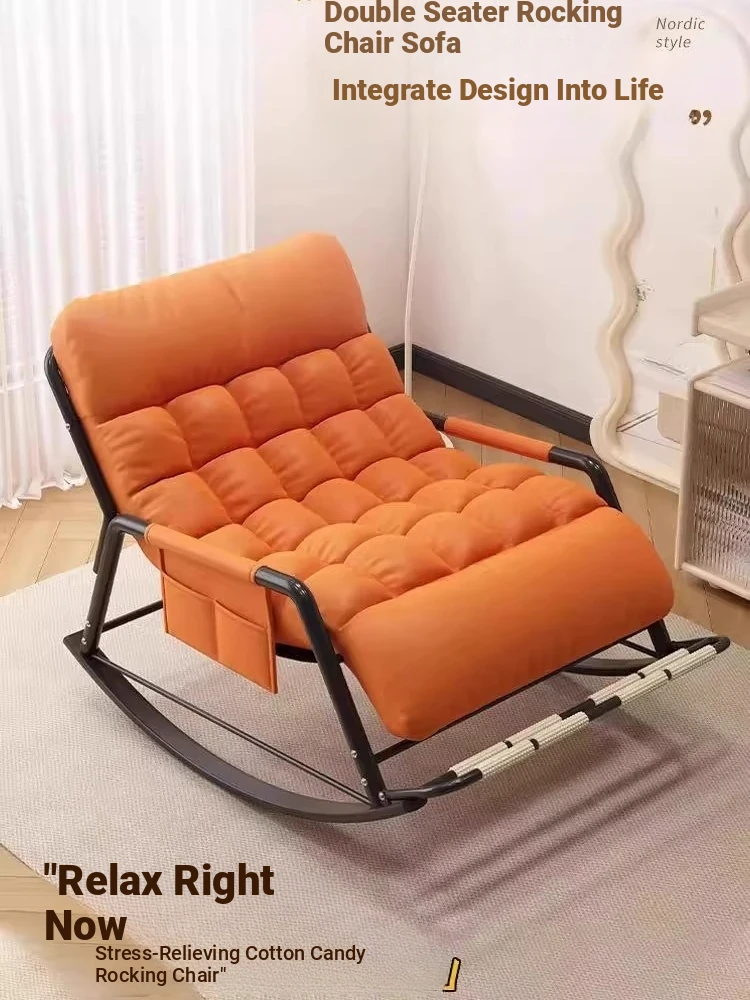 Double Rocking Chair with Foot-Technology Cloth [Orange]]