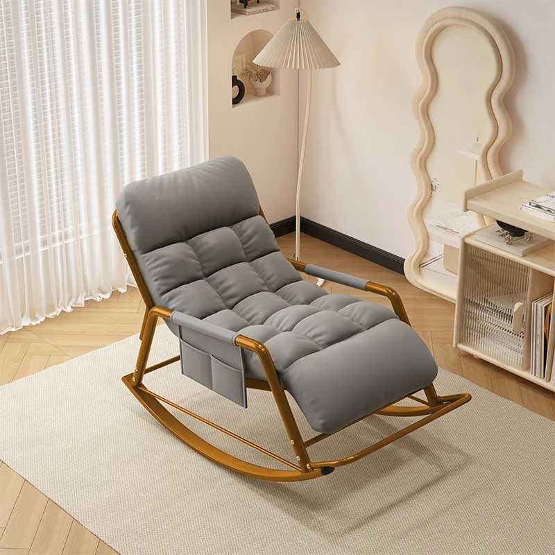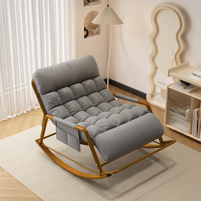 [Luxury Gold Leg] Single Rocking Chair with Foot-Technology Cloth [Grey]]