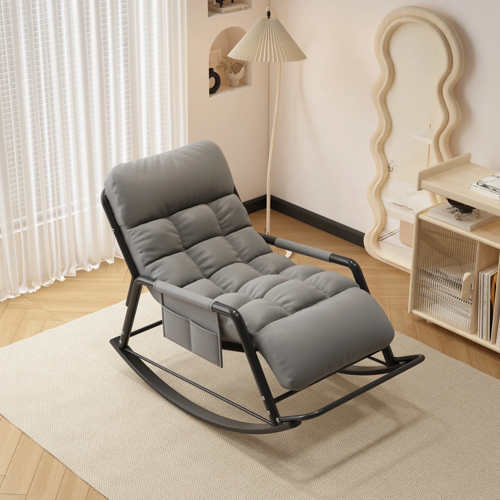 Single rocking chair with pedals-technology cloth [Gray]]