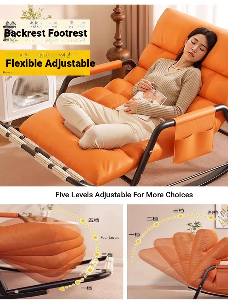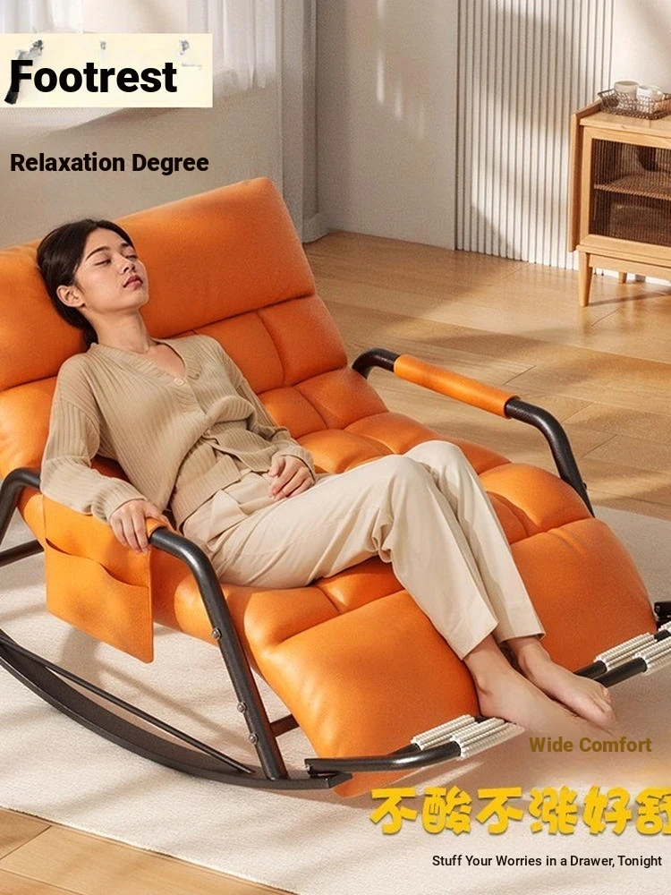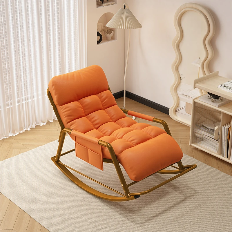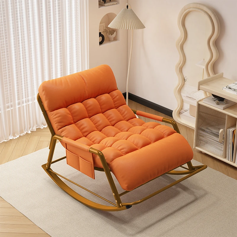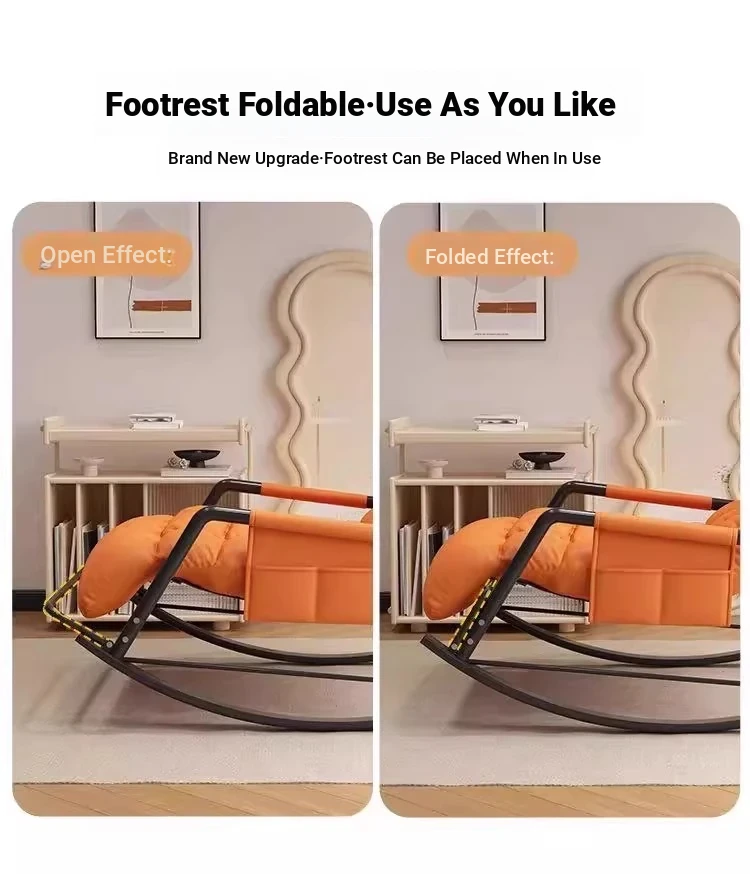 [Luxury Golden Leg] Single Rocking Chair with Foot-Technology Cloth [Orange]]