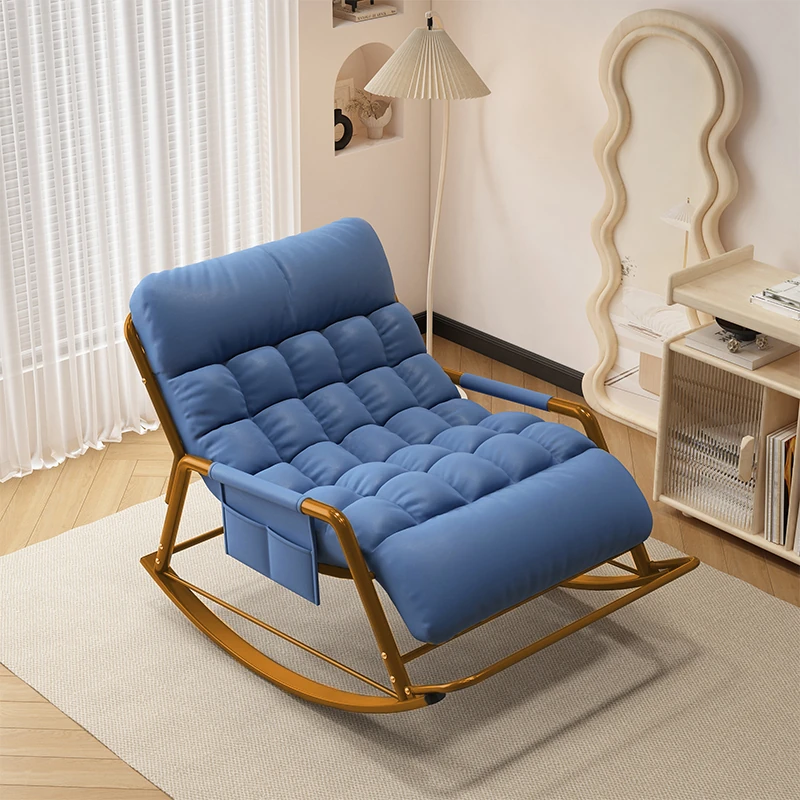 [Luxury Gold Leg] Single Rocking Chair with Foot-Technology Cloth [Blue]]