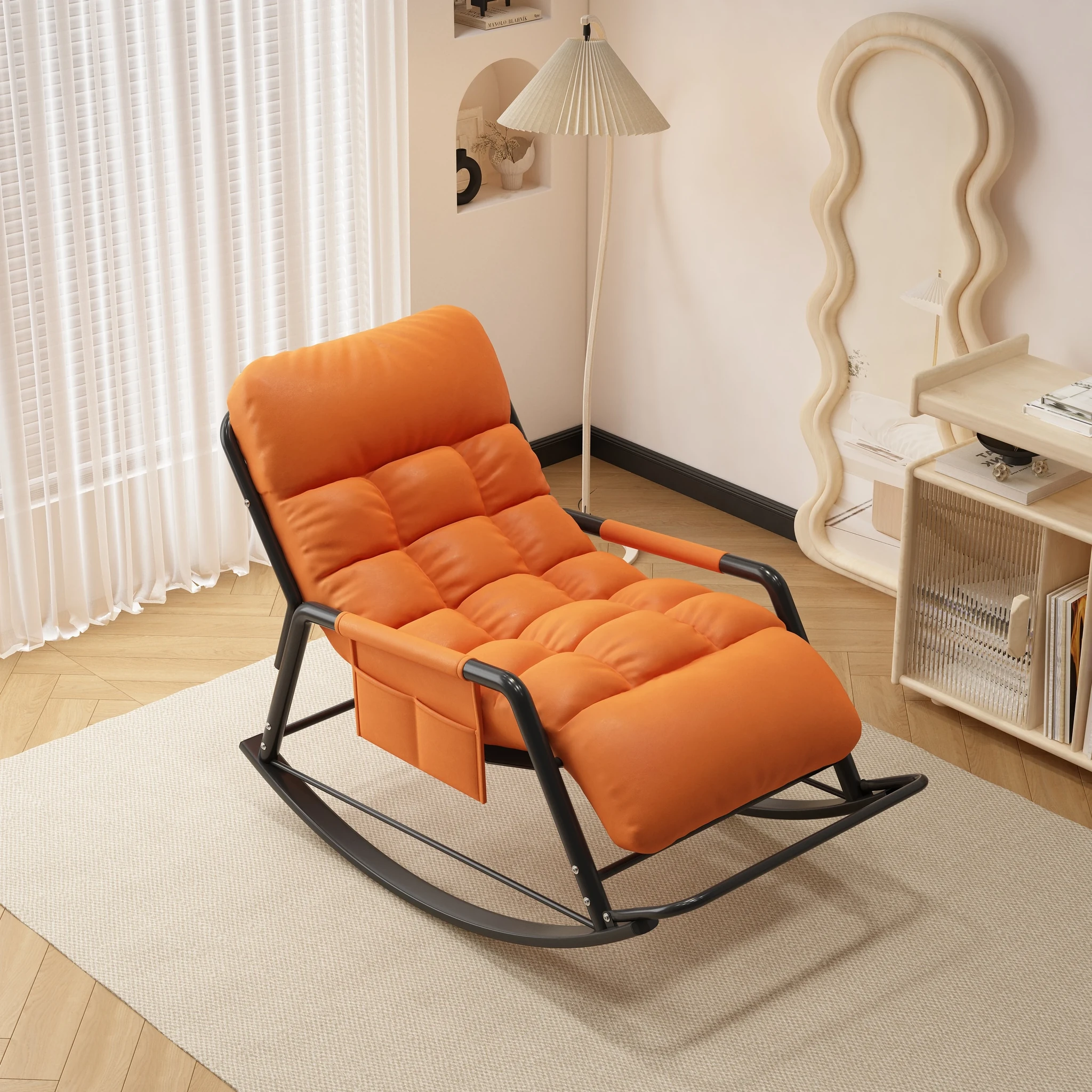 Single rocking chair with pedals-technology cloth [Orange]]