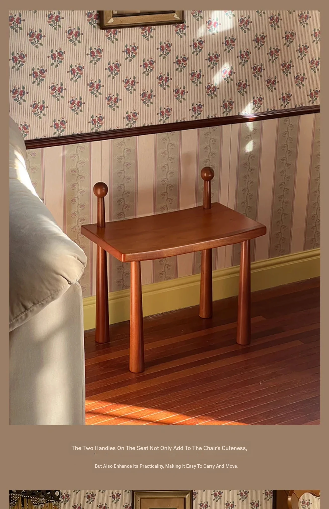 "Cozy Companion Stool - Solid Wood Small Bench for Home Use, Perfect for Living Room, Vanity, Coffee Table, and Versatile Seating"