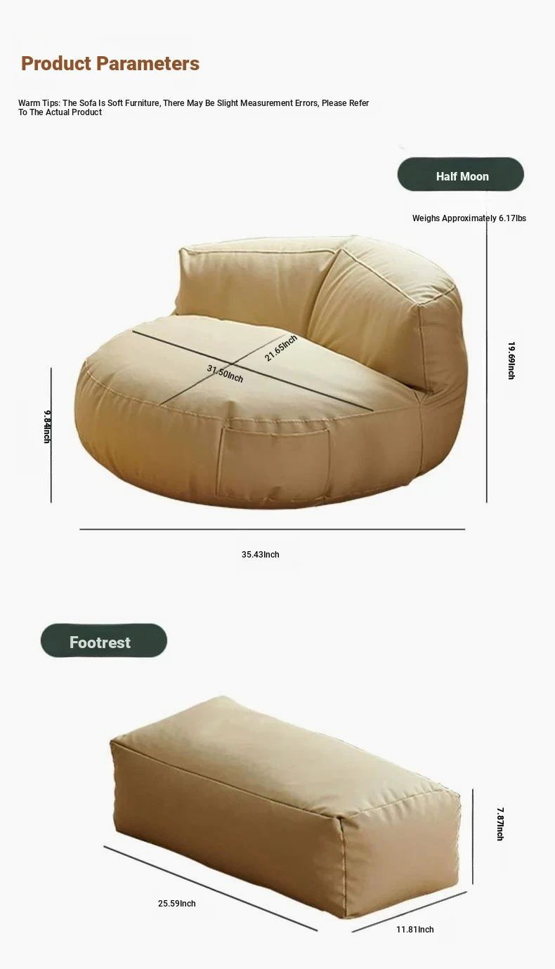 [Microfiber nano soft leather] Brown Half Moon sofa + rectangular foot