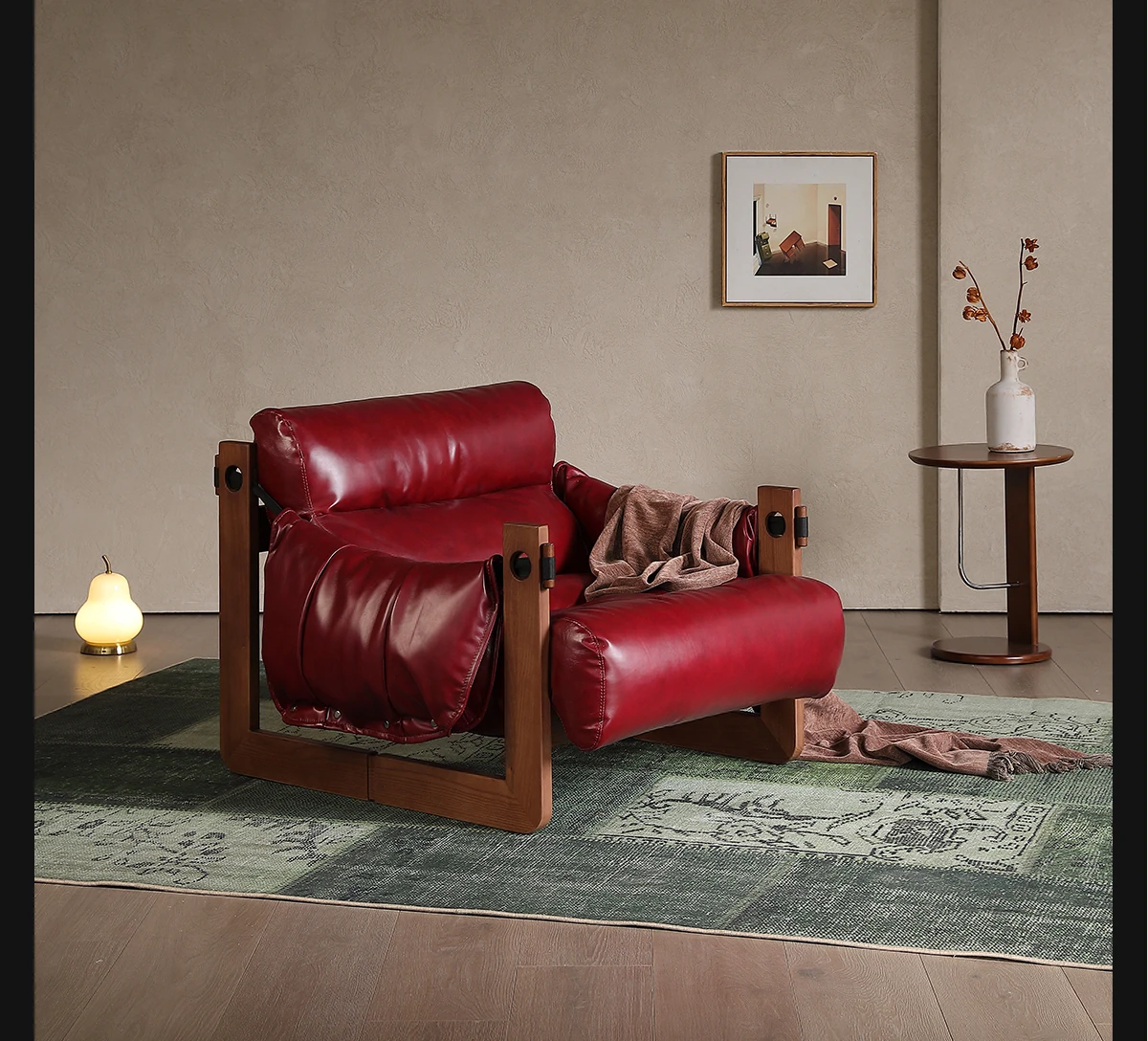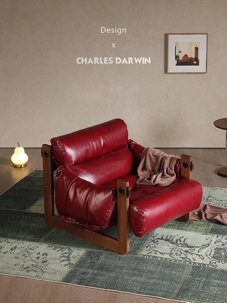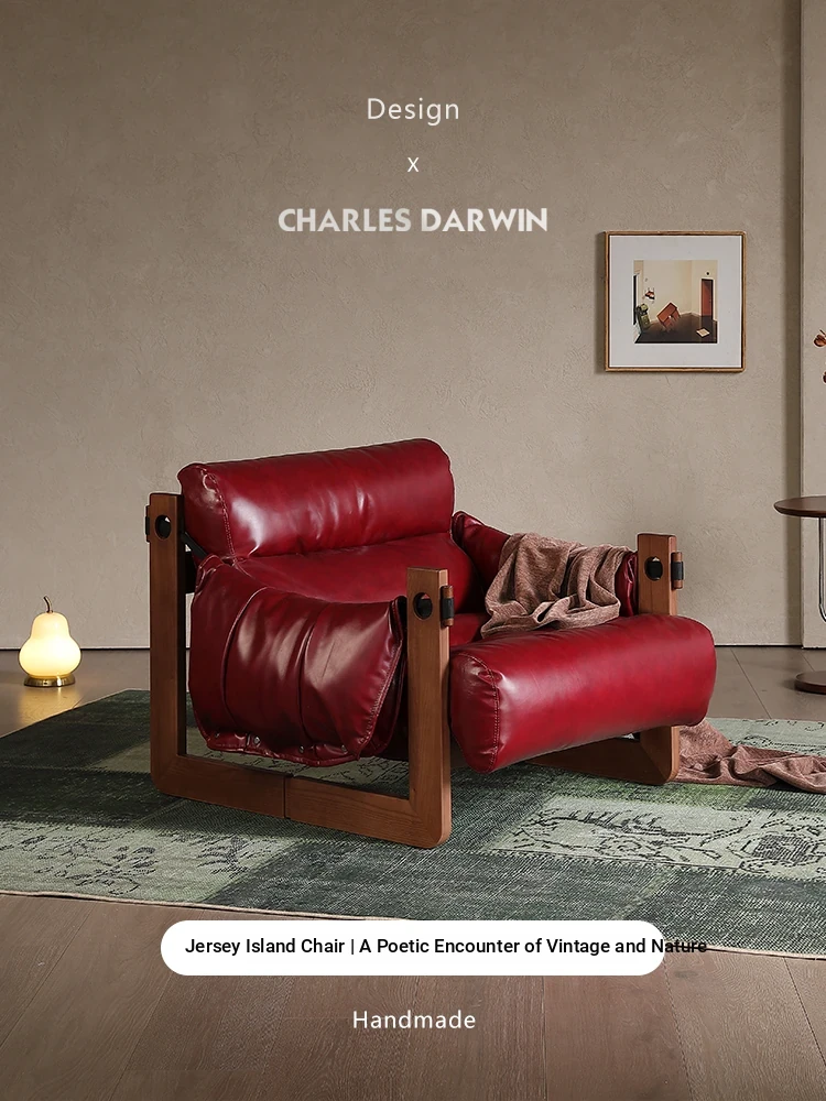 Darwin Jersey Chair - Elegant Jersey Island Single Lounge Chair in Ash Wood, Vintage Style Leather Sofa Chair for Your Living Room