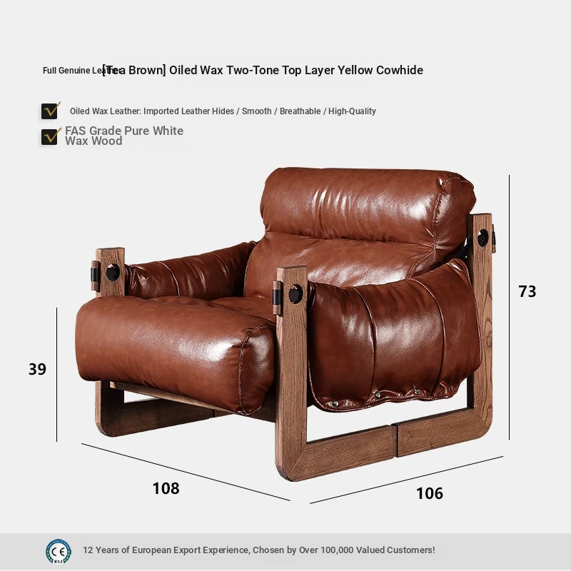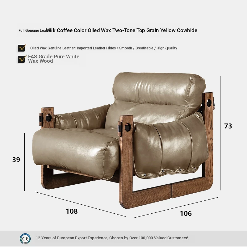 Full leather [single chair + pedal] oil wax double color first layer yellow cattle leather