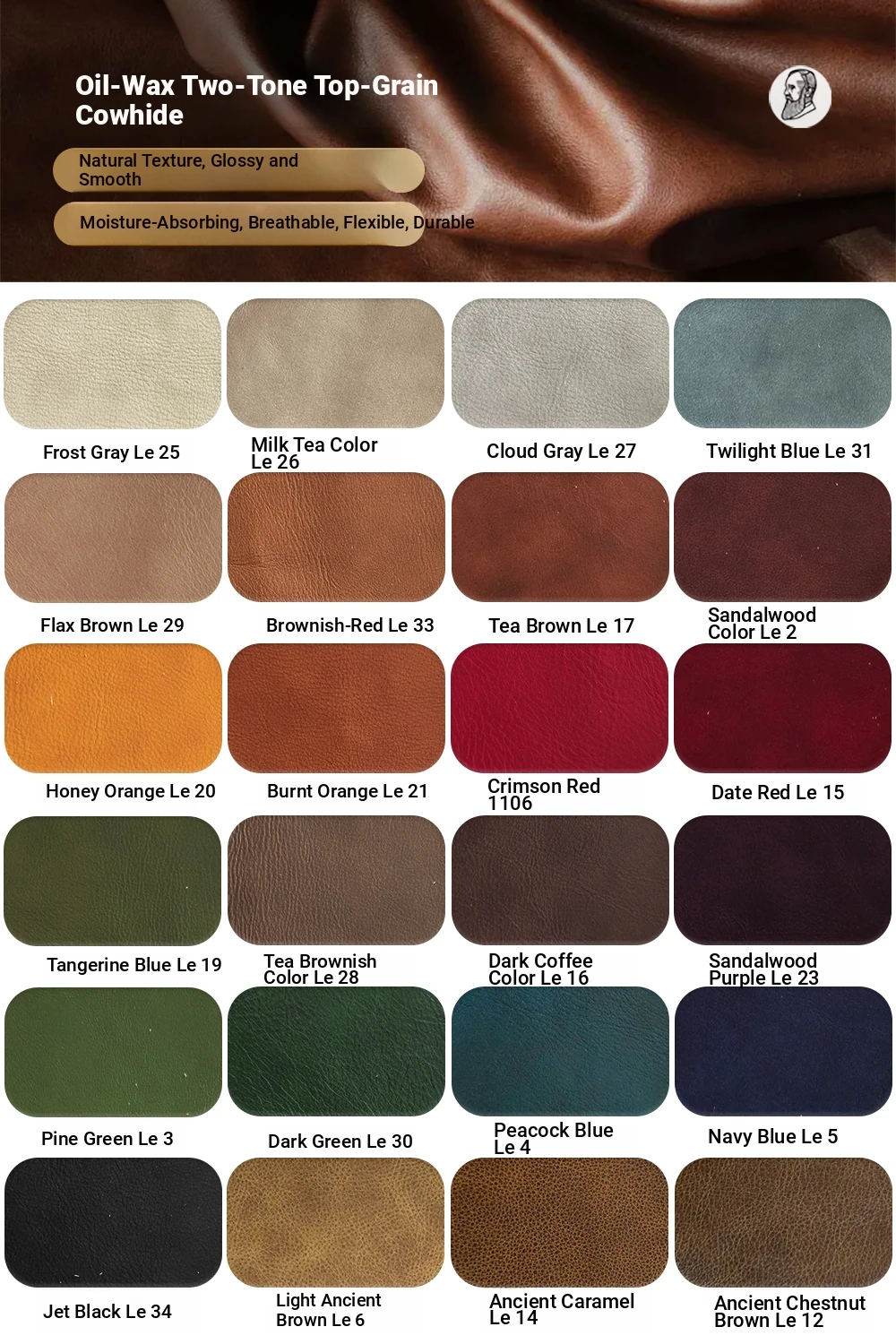 Full leather [tea Brown] oil wax two-color top layer yellow cattle leather