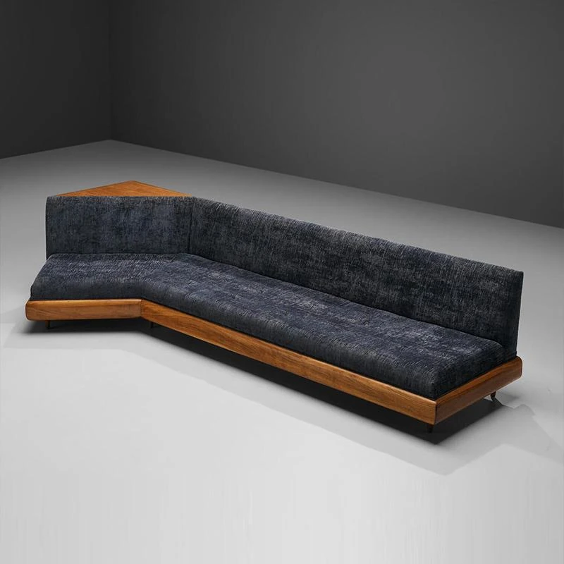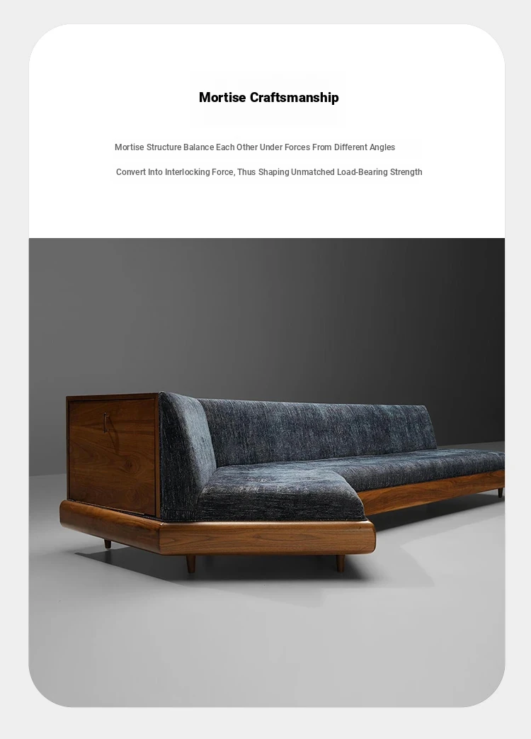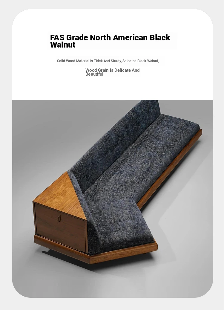 Designer-Inspired Luxury Sofa with Unique Shape - Three-Seater for Villa Living Room, New Chinese Style, Walnut Wood Finish