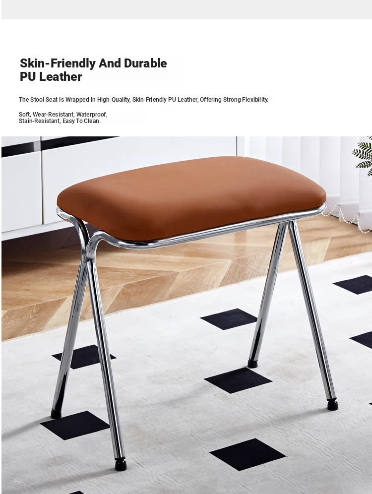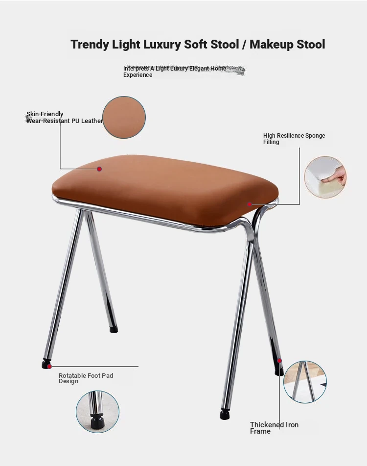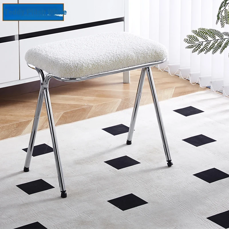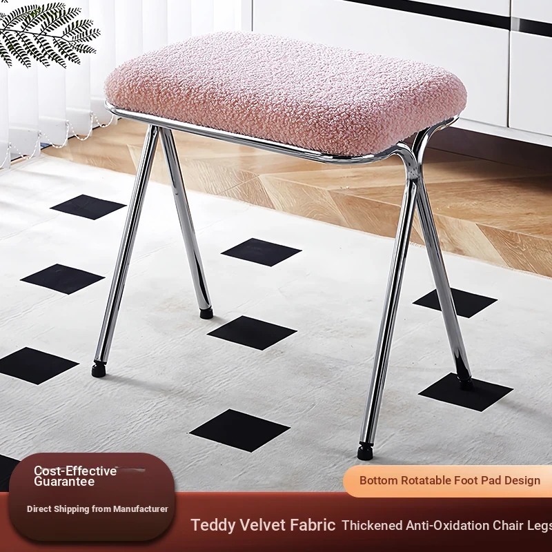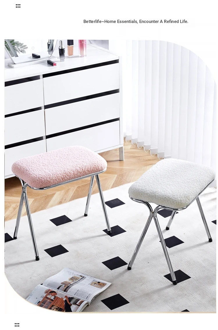 Elegant Cream Makeup Vanity Stool for Girls' Bedrooms - Chic, Space-Saving Design Perfect for Nail Art and Writing Desks. Stylish and Luxurious Touch for Your Living Space!