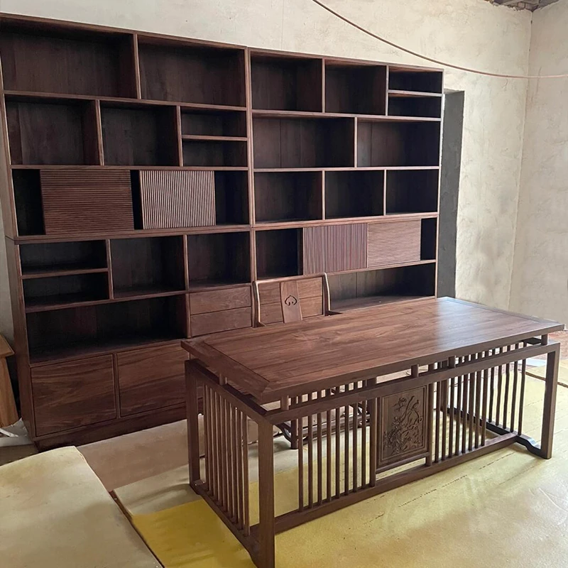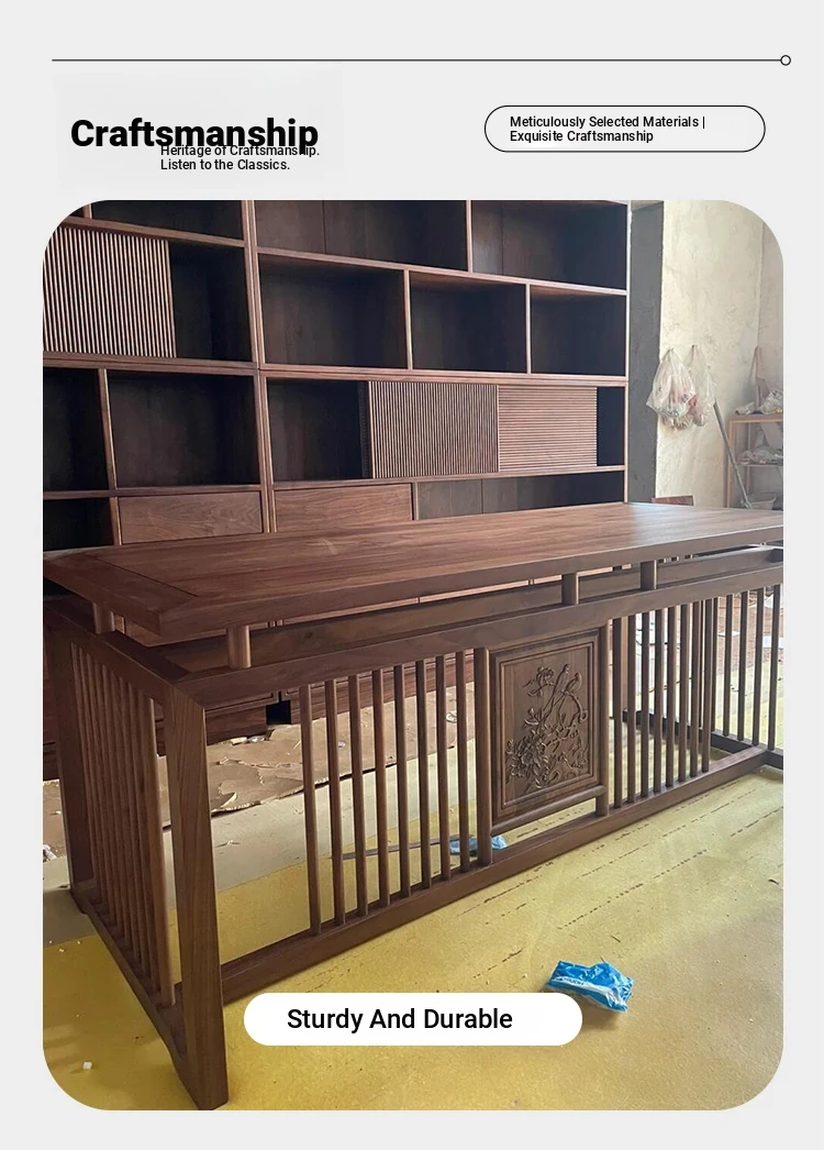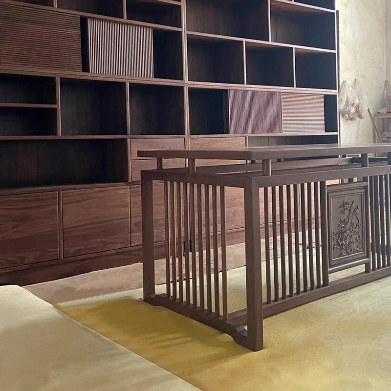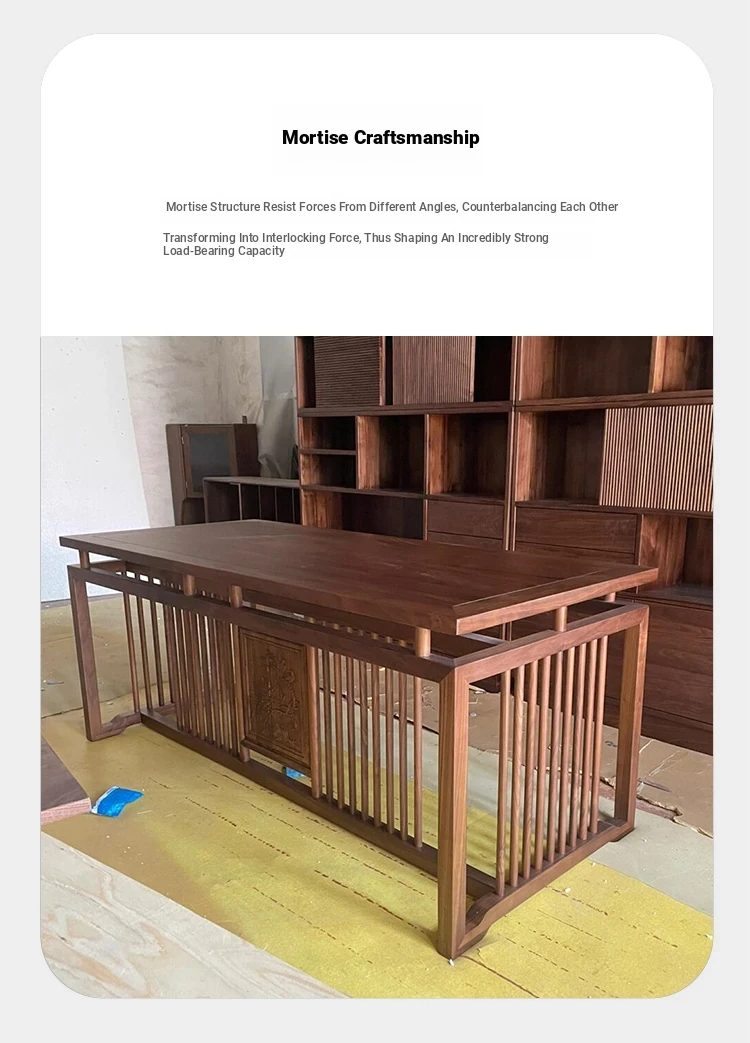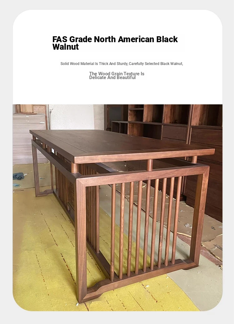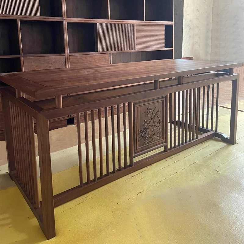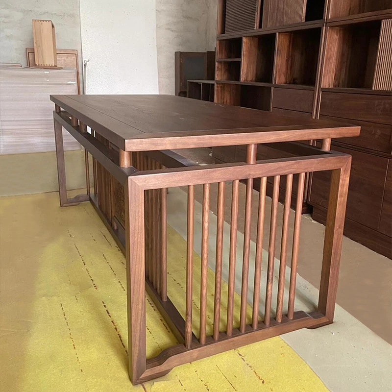 Elegant New Chinese Style Solid Wood Writing Desk - Walnut High-End Office Table for Home Study, Perfect for Calligraphy and Tea Ceremonies, Modern Minimalist Design