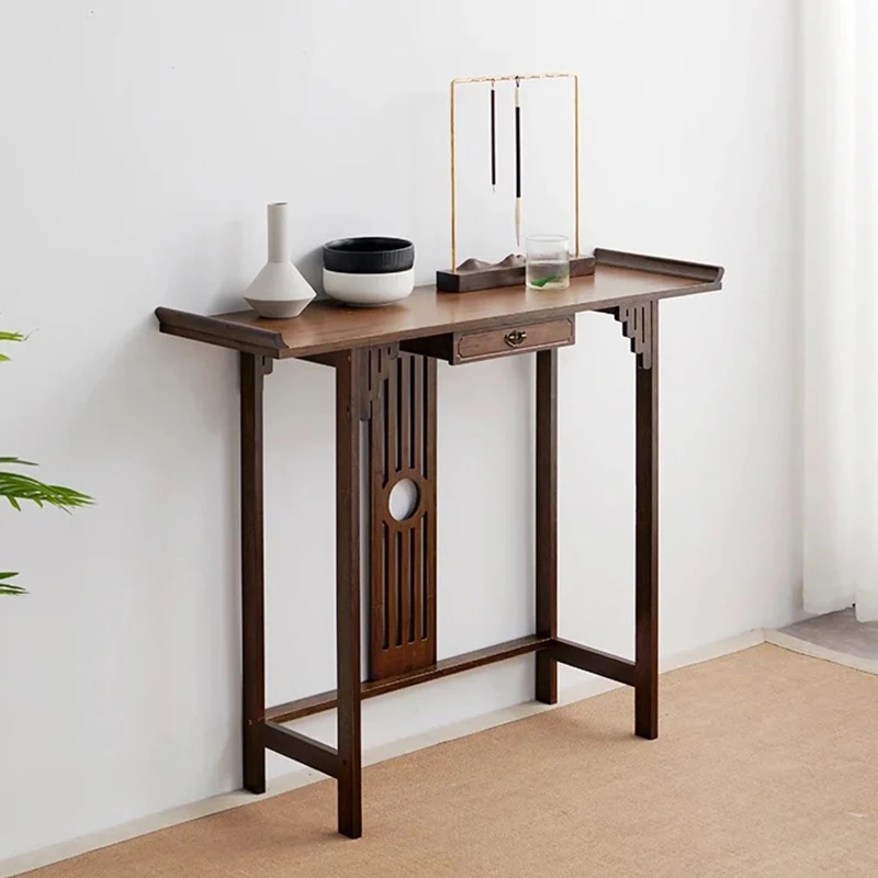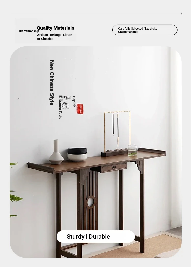 Elegant New Chinese Style Walnut Entryway Table - Minimalist Solid Wood Console for Luxury Hallway, Perfect for Zen-Inspired Home Decor